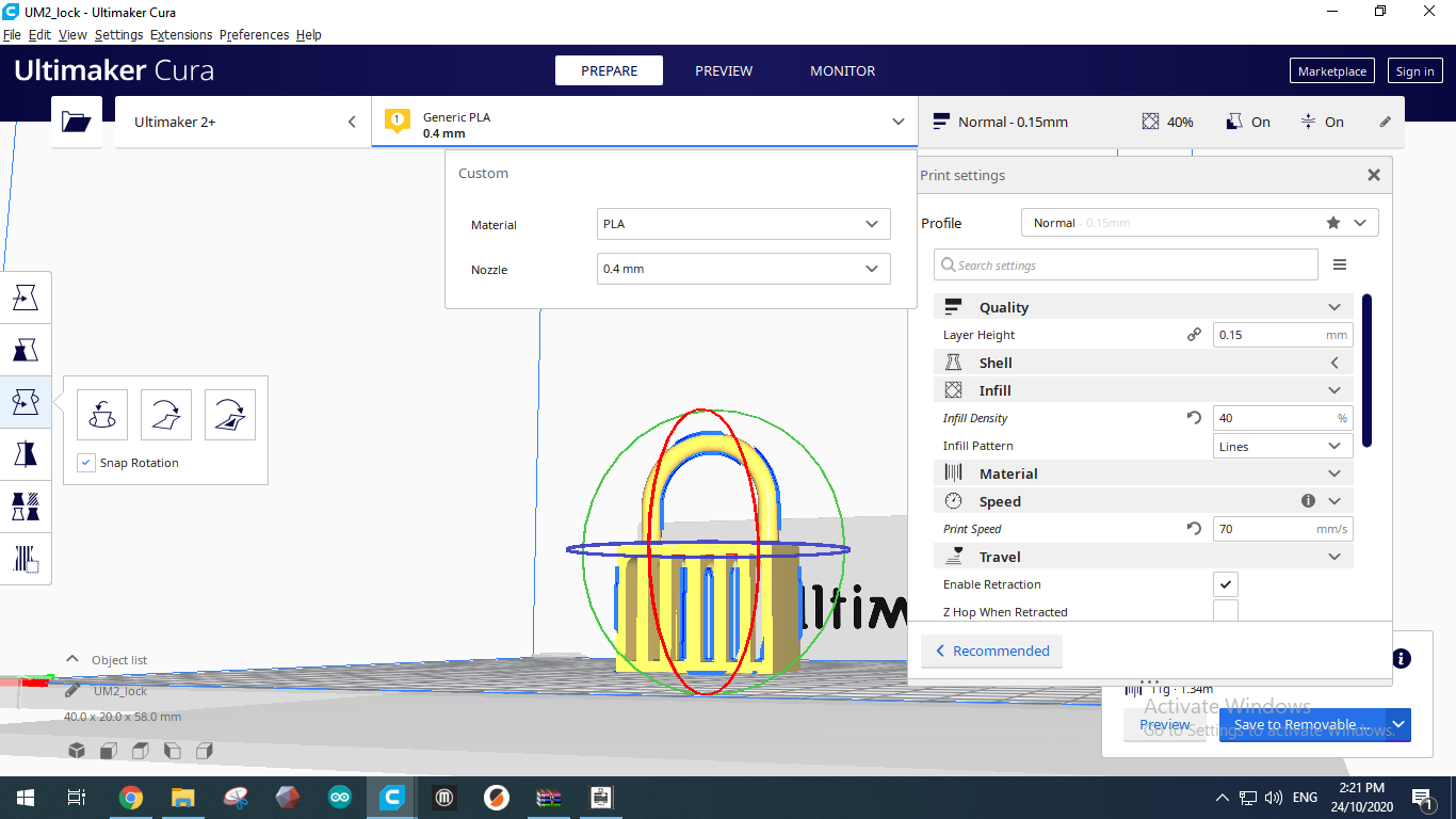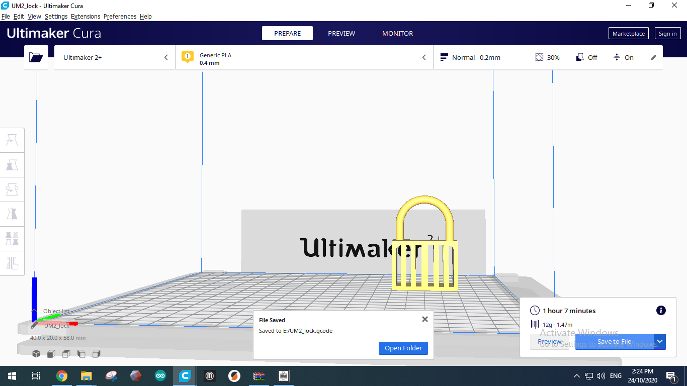 to terraform the file from the STL to Gcode that the printer can understand I used Ultimaker Cura :