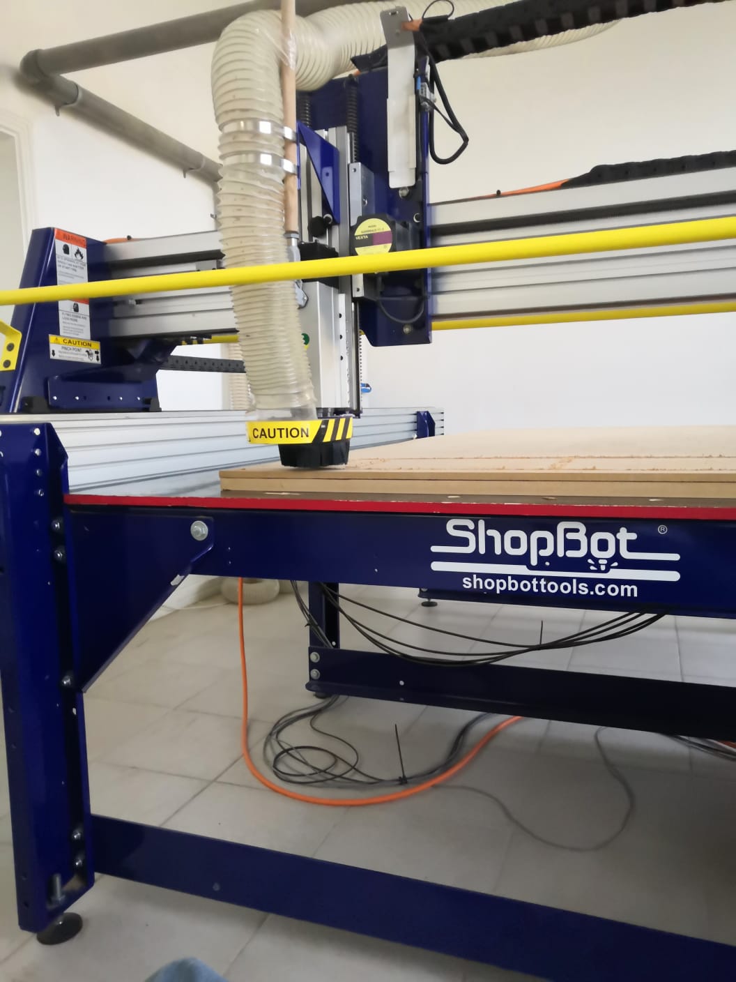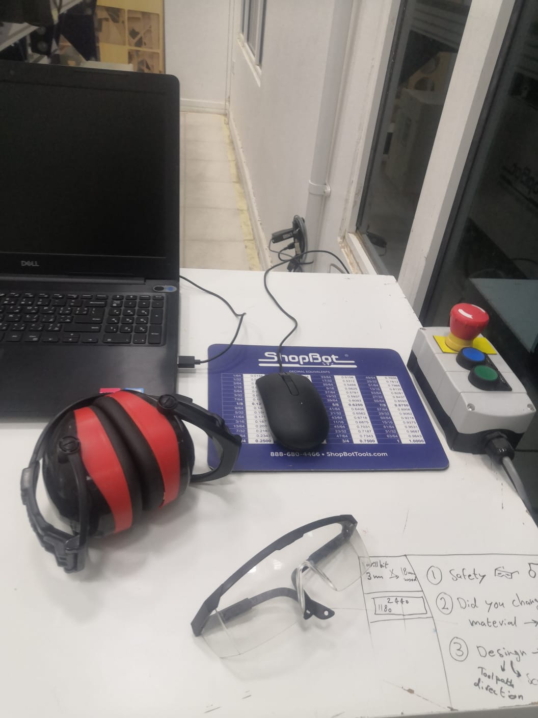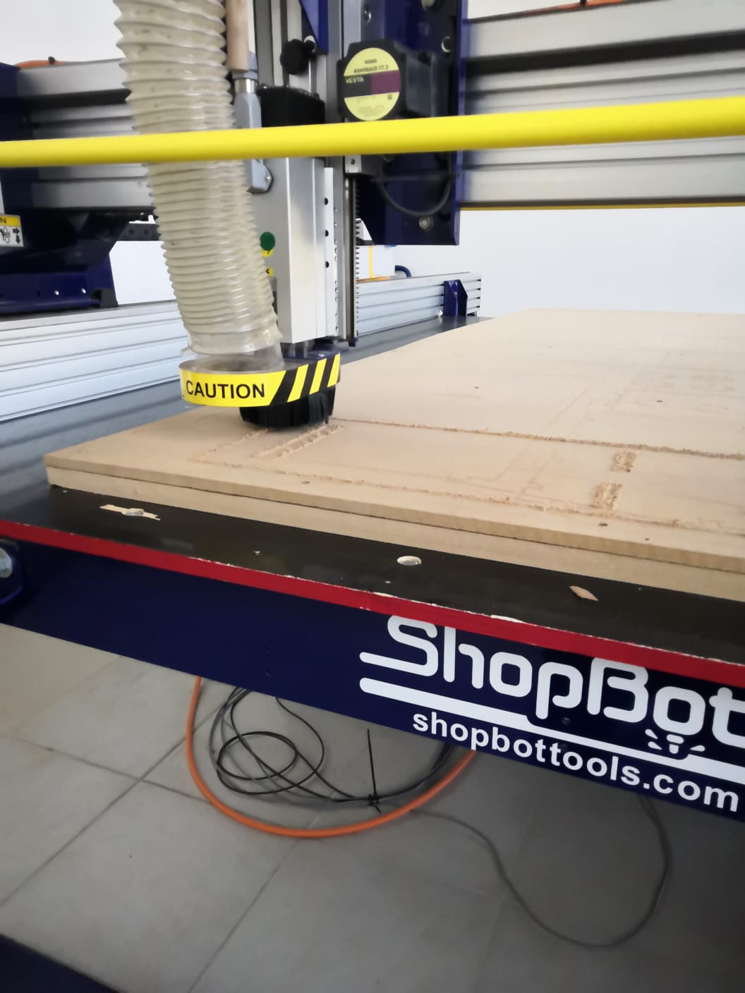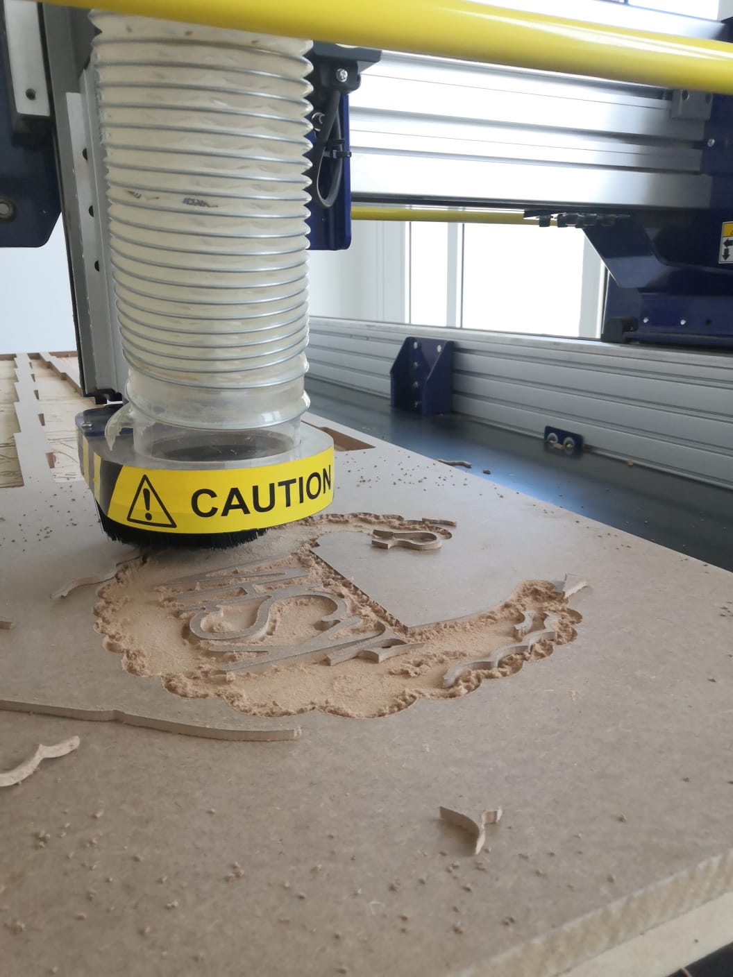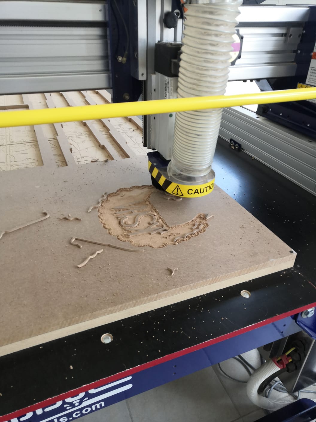 I chose the MDF with thickness 18mm, I start putting it in CNC pad and align it after that screw every corner in it than I screw on the sides to make sure that the MDF doesn’t move while the machine working.