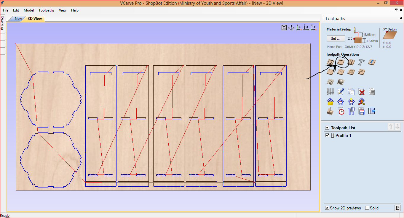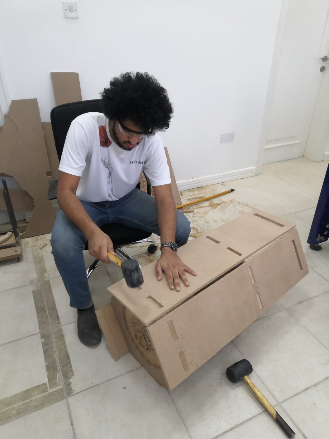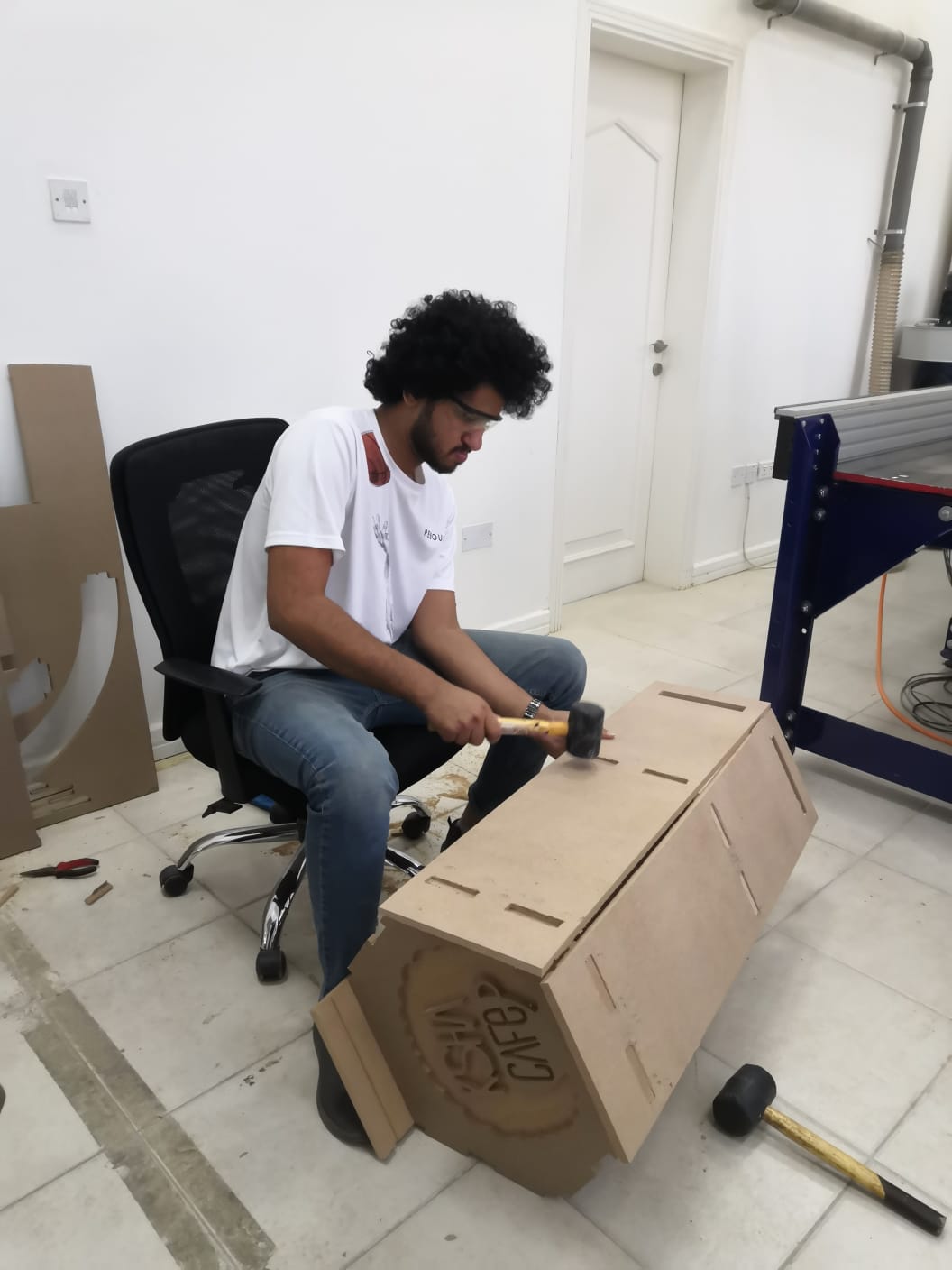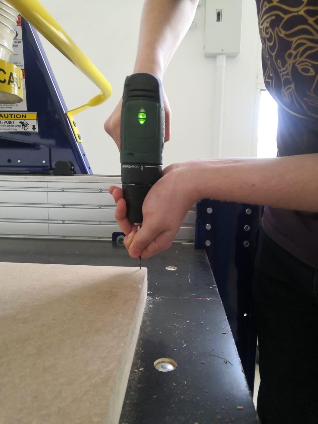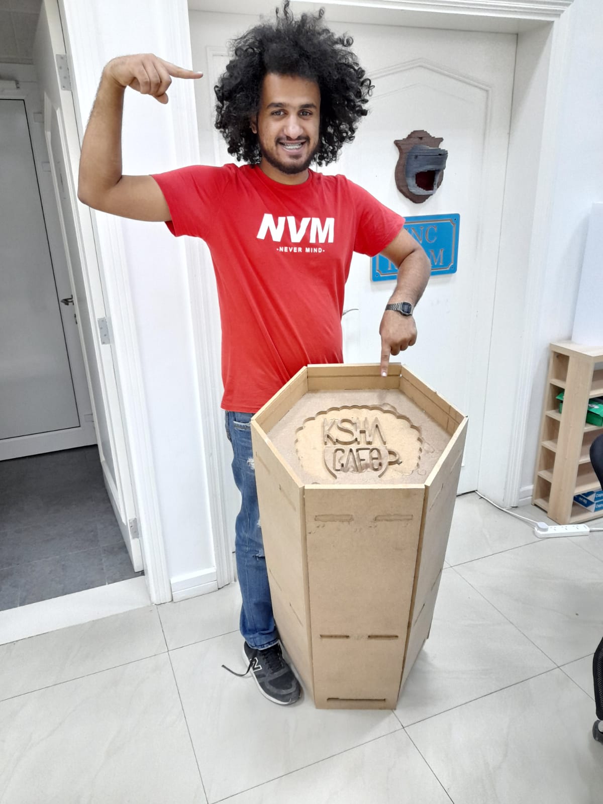 I chose the MDF with thickness 18mm, I start putting it in CNC pad and align it after that screw every corner in it than I screw on the sides to make sure that the MDF doesn’t move while the machine working.