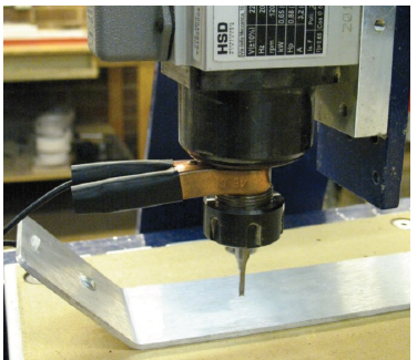 Place the grounding clip on the bit, if possible. Otherwise, place it on the collet nut or shaft of the spindle. Set the plate down directly beneath the bit.