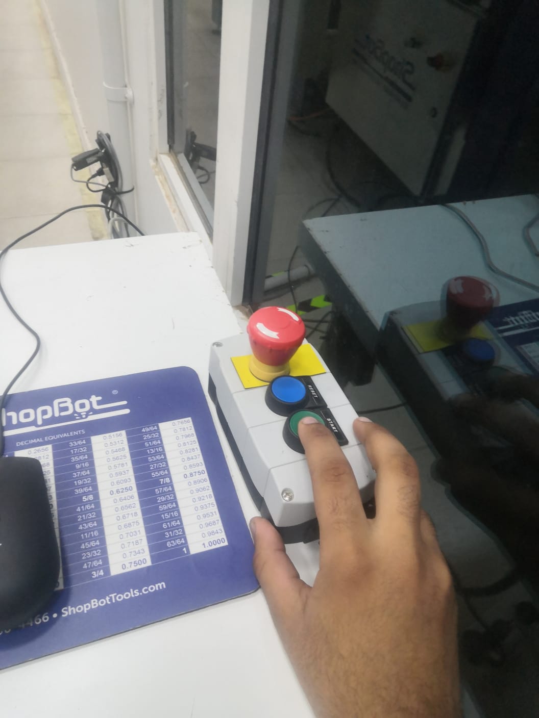 Then I press on the start button and If anything happened and I needed to stop the machine I press in the red button