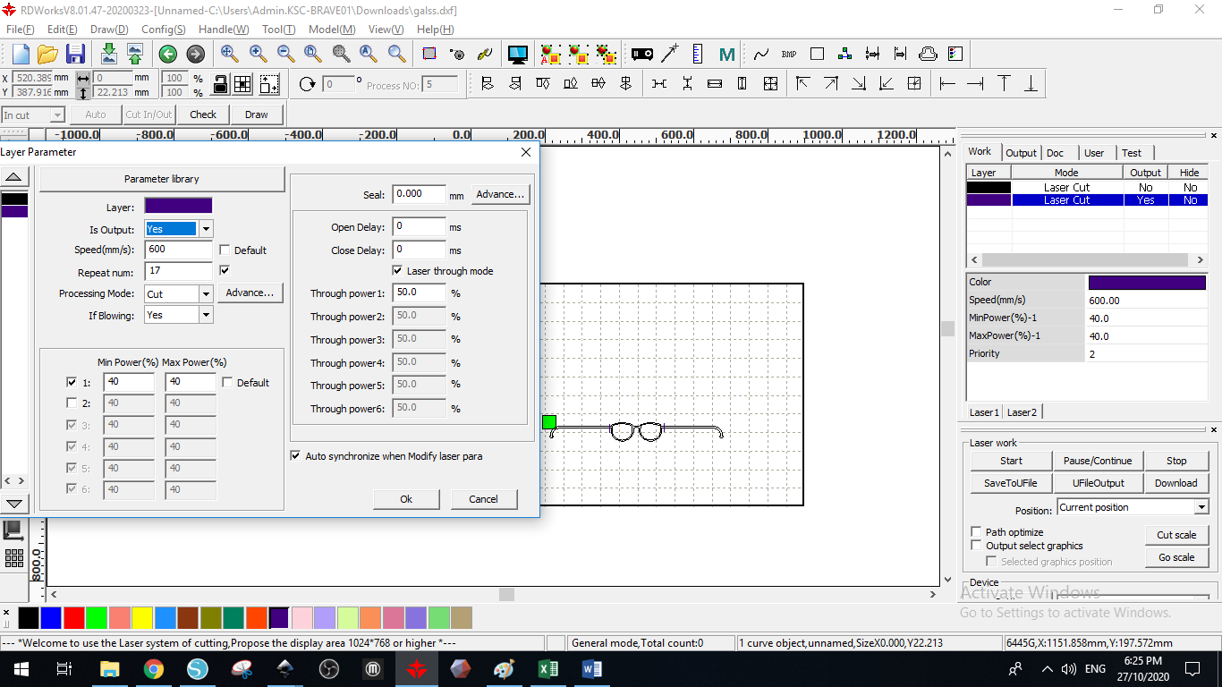 first I try to make the reduce the power and increase the speed and the pass, but this didn’t work and it cut the acrylic.