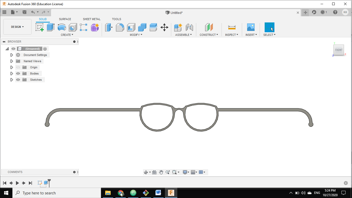 first thing I did is two circle in top of each other for nose so I can make the glasses bridge