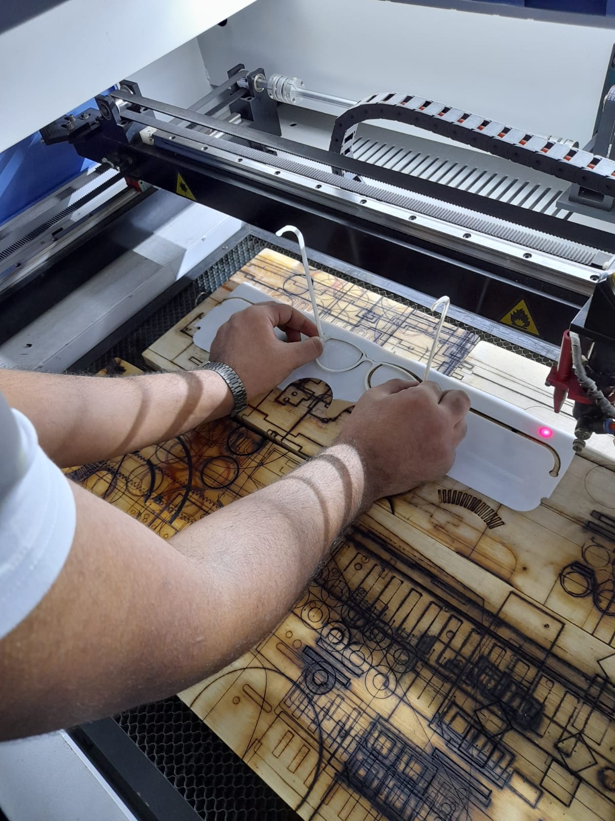 I mast be fast as soon the leaser fined I bend the acrylic to up, and if I wasn’t fast it will cooled and when I will try to bend it break