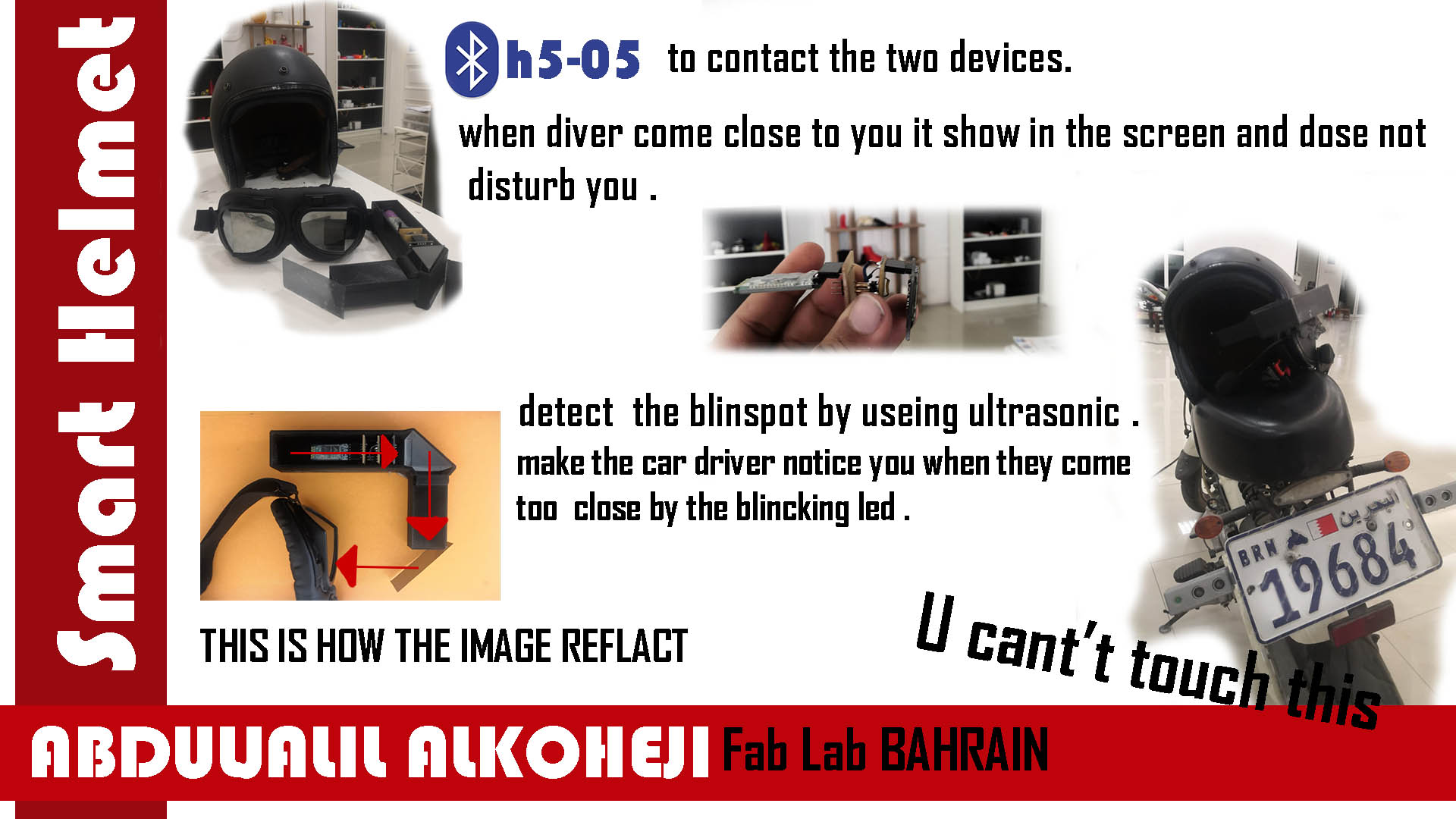 my project aim to reduce the bike accident deo to the blind spot, they cant see if there is a car or something behind them, in my century a lot of motorcycle accident happen to Talabat “food delivery company” because they want to deliver food as fast as they can.