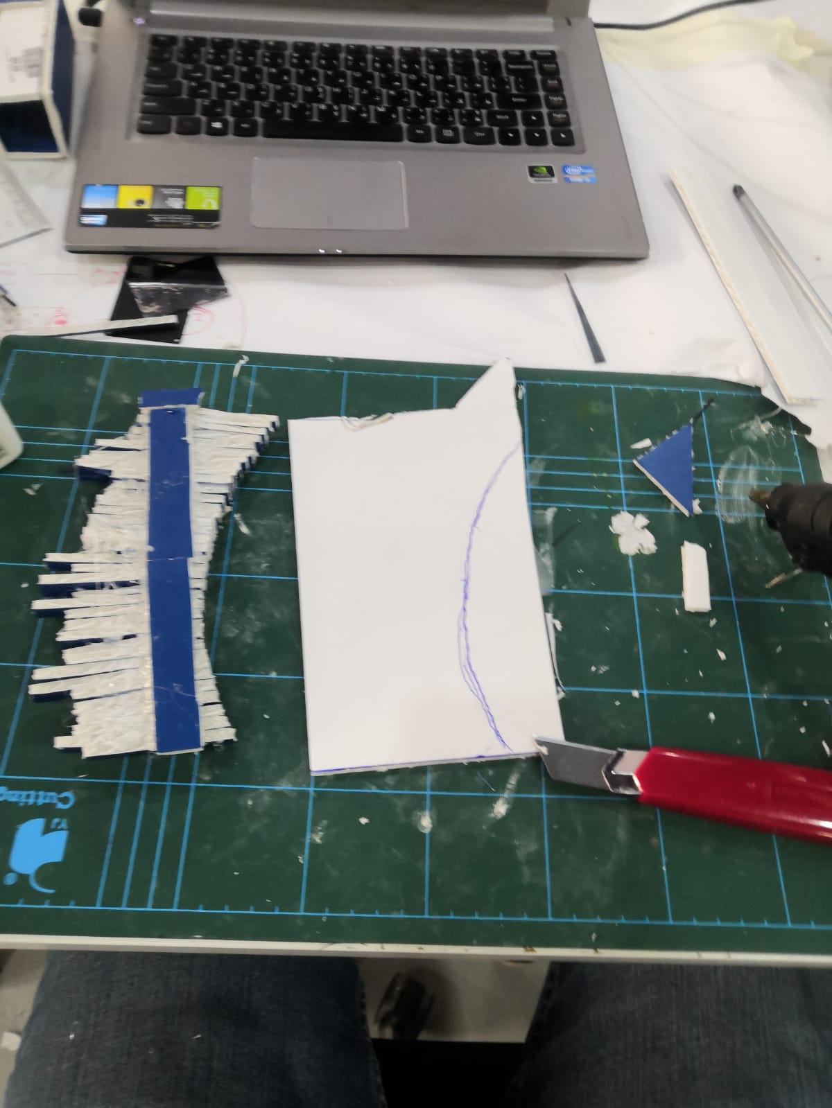 After that I remove it from the helmet and put in top of paper and make line on it, then I measured the angle by taking the height of the carve to the end line ever 1 cm, this will help me to do design.