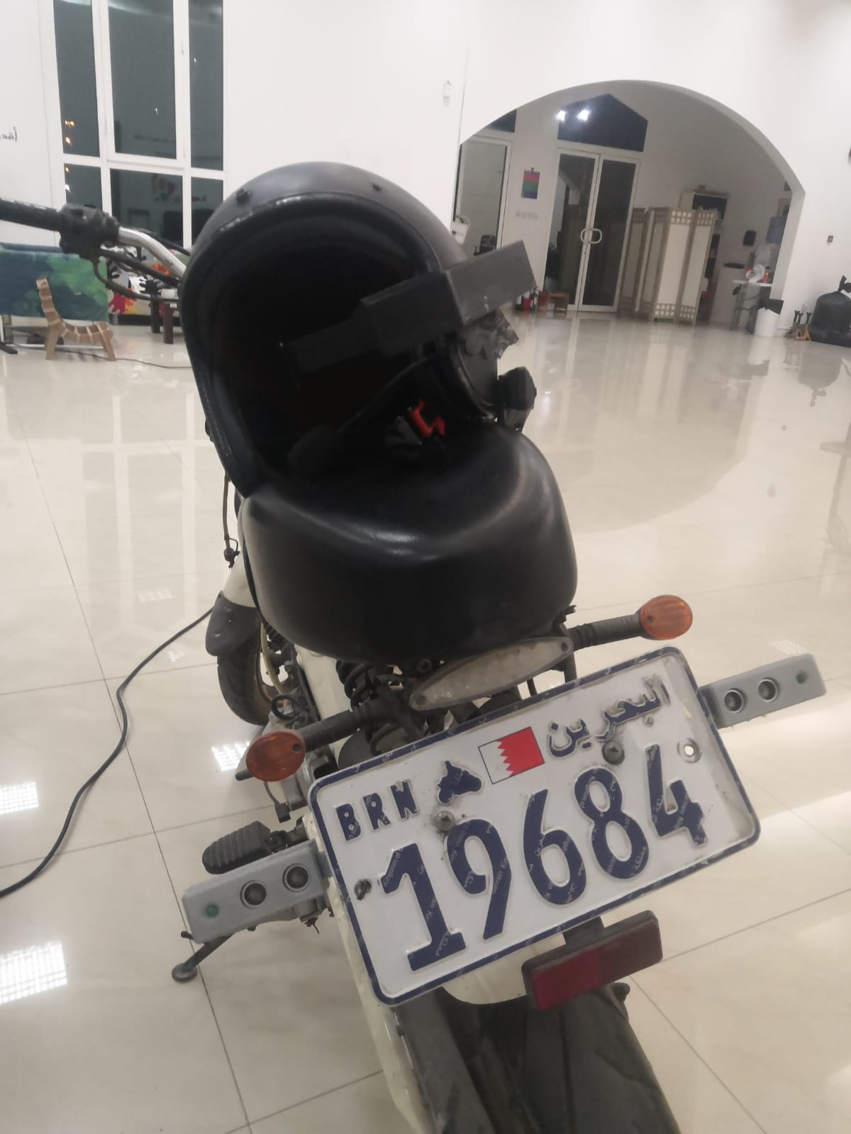 the device in the motorcycle will have two ultrasonic sensor at each side at the back in the plate number of the motorcycle too cover more space behind the rider and if it since any thing in three meter and make light blink near the sensor, and at the same time it send data by Bluetooth to the other device that there is something behind you and this device that attach to the helmet have screen and this screen will show dingers sign without making the rider by making the screen reflect on transparent plastic on front of the rider eye. and the dingers sign will appear at the same side that someone close behind you.