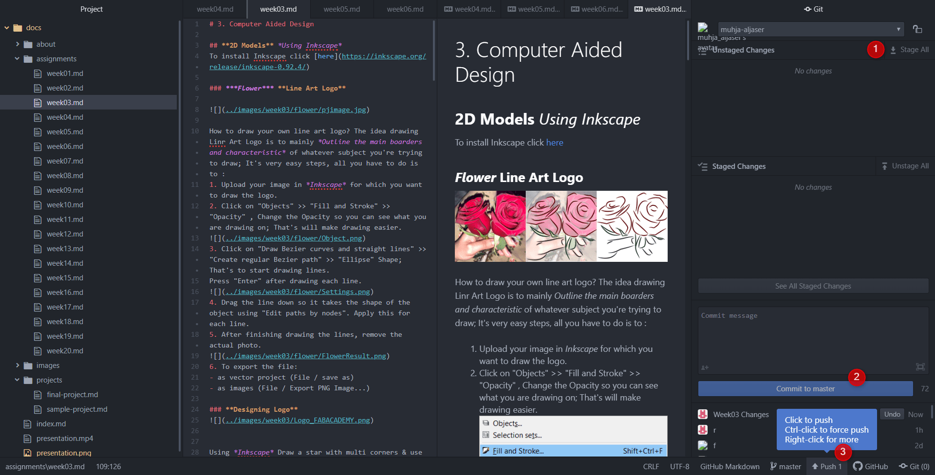 - This window will opened to you, “Stage All” the changes, write a “Commit message” and “Commit to master”. After that “Push” the changes.