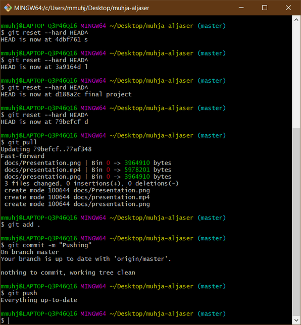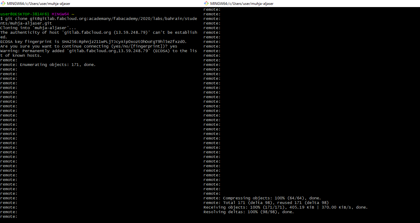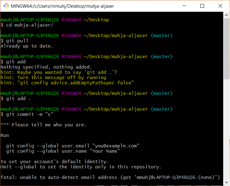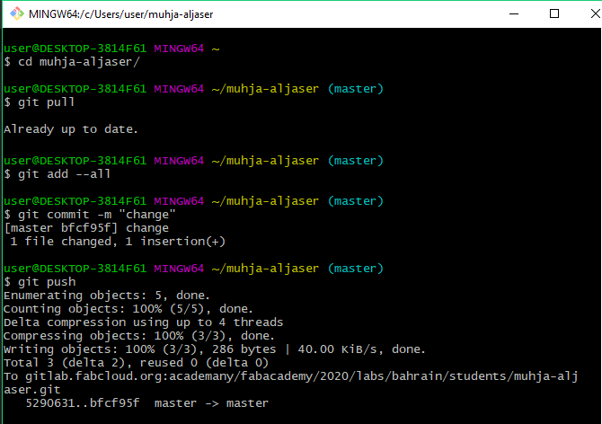 cd muhja-aljaser/(NOTE: WRITE THE FIRST LETTERS OF YOUR FOLDER NAME & PRESS ‘TAB’ LOCK, THE PC WILL COMPLETE THE NAME)