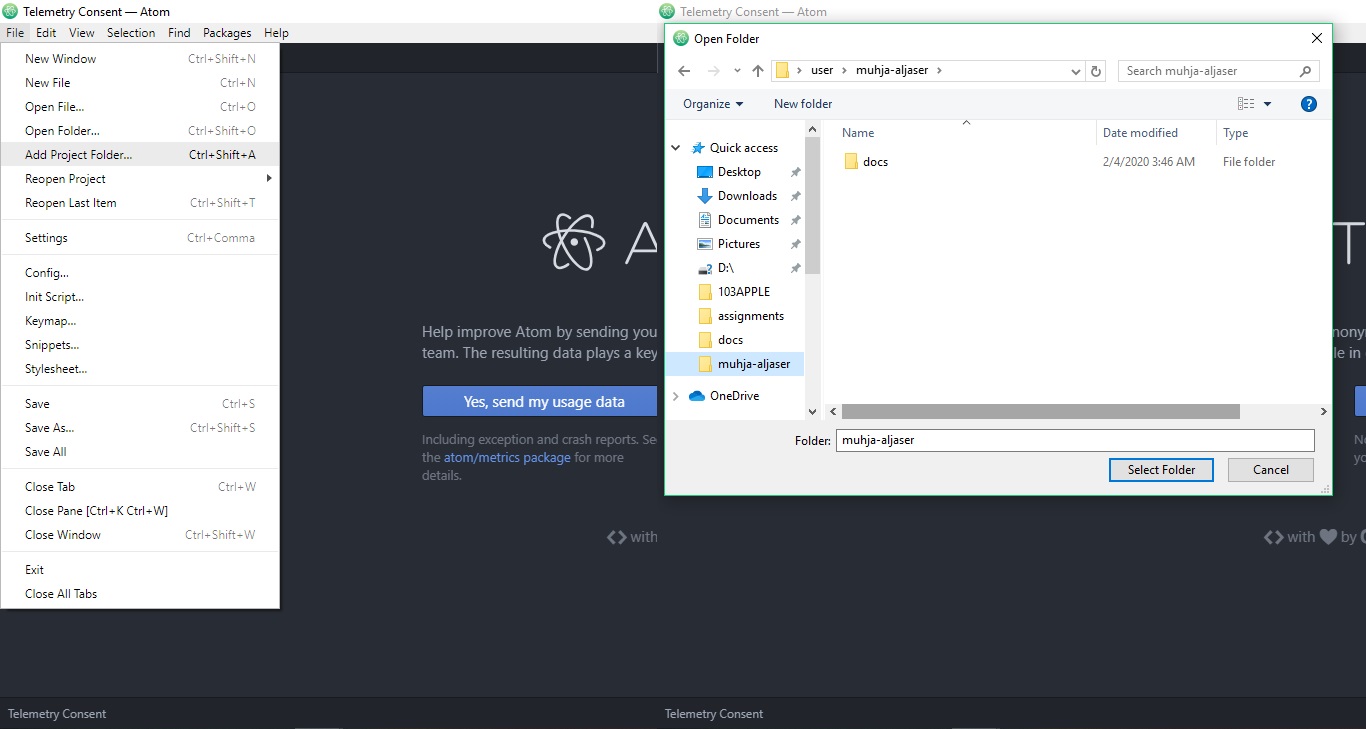 To avoid these steps with direct steps from Atom, as well as easier: - Click on this arrow.