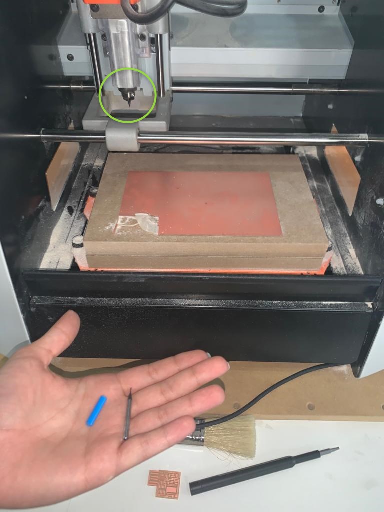 To mill the PCB we used a small milling machine “SRM-20”; It offers compact size and powerful functionality with no need for expert operating skills.