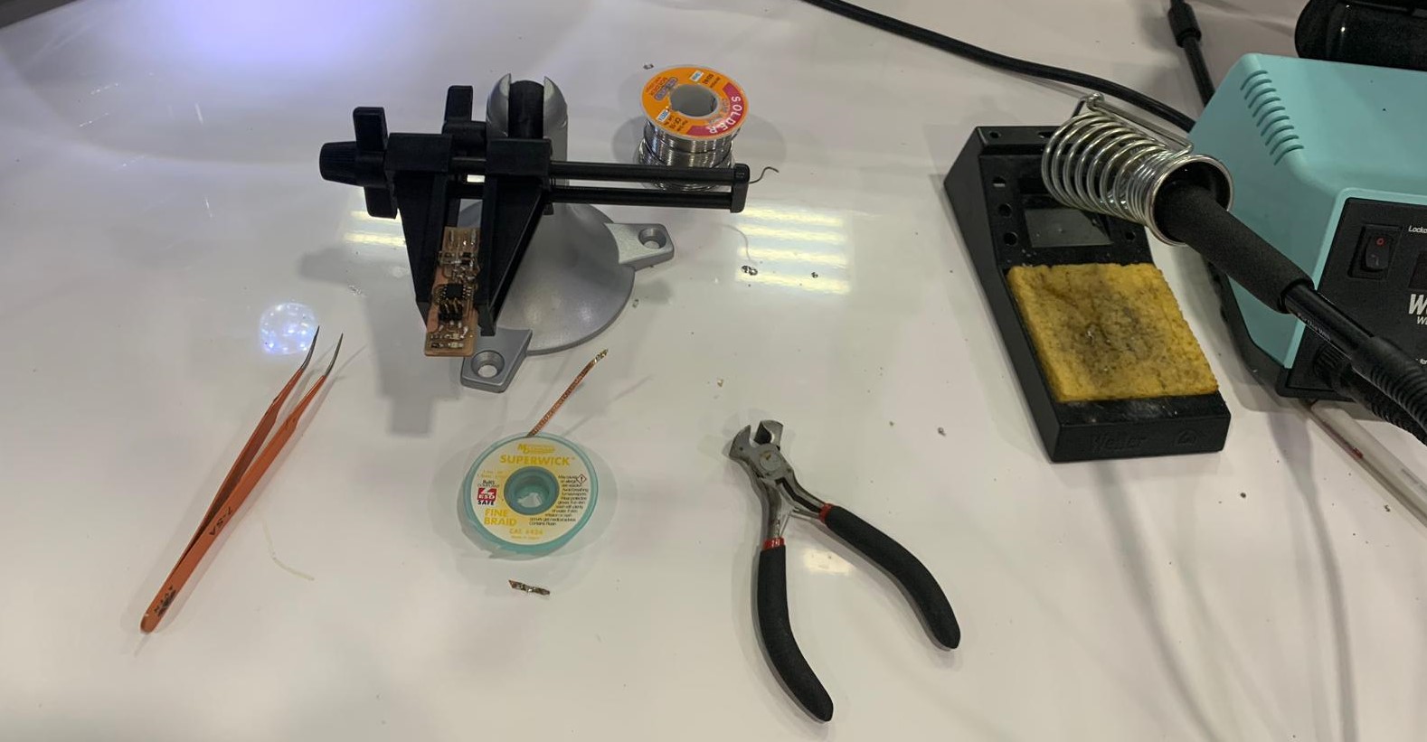 With these tools I soldereed the component on the board: