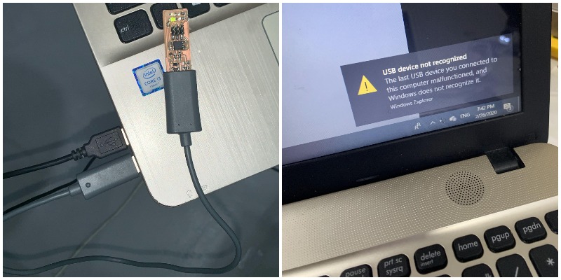 The “USB device not recognized” message when the programmer is first plugged into the computer does not mean that the device is functional, it just means that its detecting something connected to the PC.