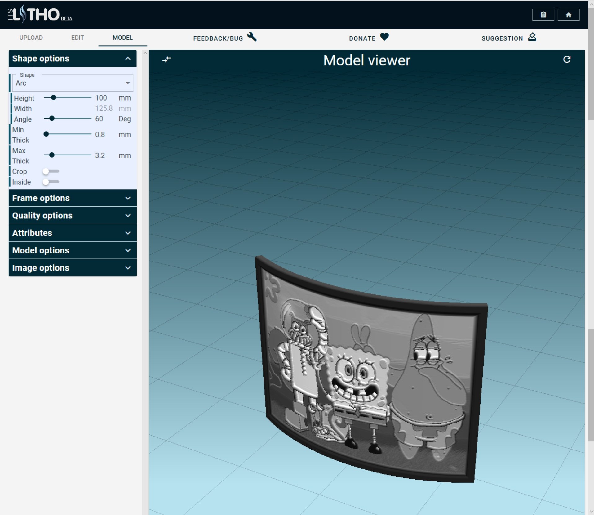 Here I did a nice experiment, by converting SpongeBob image into a 3D model through the easy-to-use ItsLitho website.