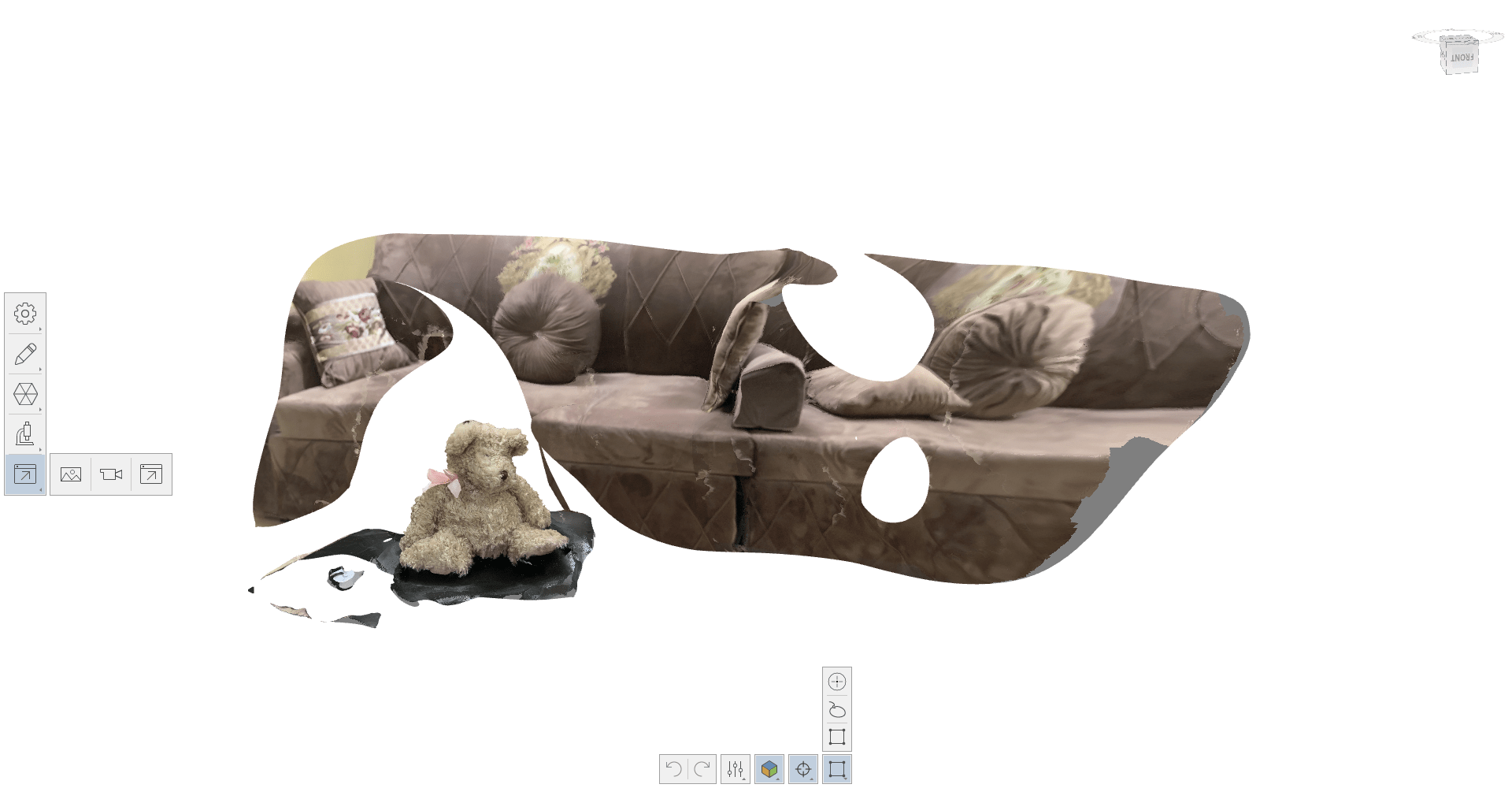 This is the result of the scan. The teddy bear appeared beautiful, but also unwanted parts of the room appeared.