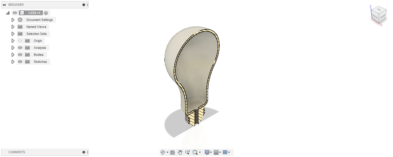 In this part I will use the LED I designed in Computer Aided Design week.I empty it from the inside using the “shell” feature, and I created a hole at the bottom of the design using the “Hole” feature that’s in order to be able to put in a lighted LED.