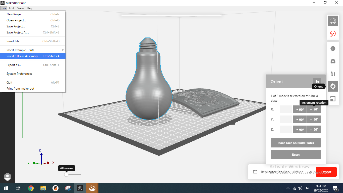 I used “MakerBot Replicator”, it’s a 3D printer that comes with a Smart Extruder, as well as an LCD display and an on-board camera, as well as USB, Ethernet, and Wi-Fi connection.