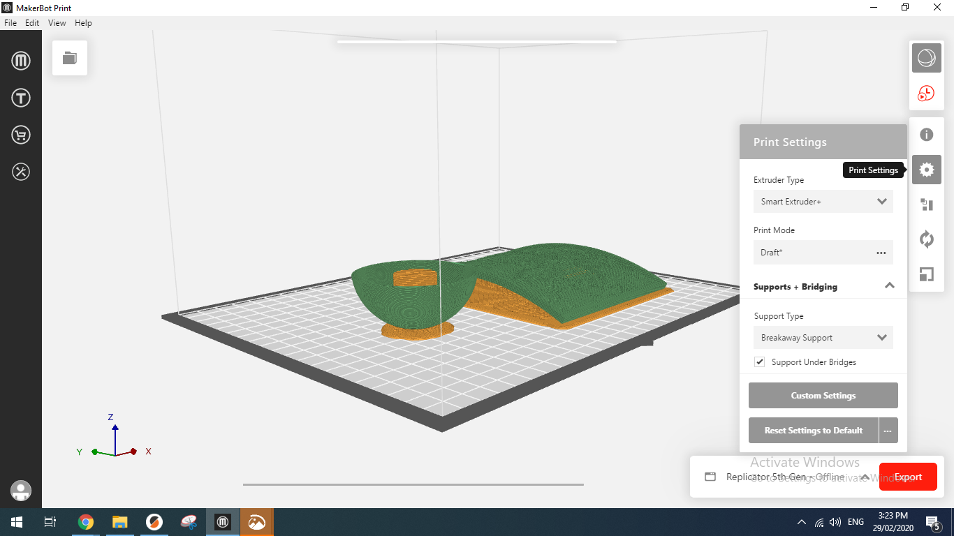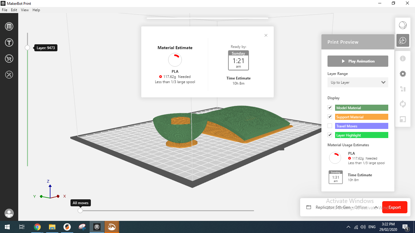 - Here you can see how long the printer will take; To start printing click on “Export”.