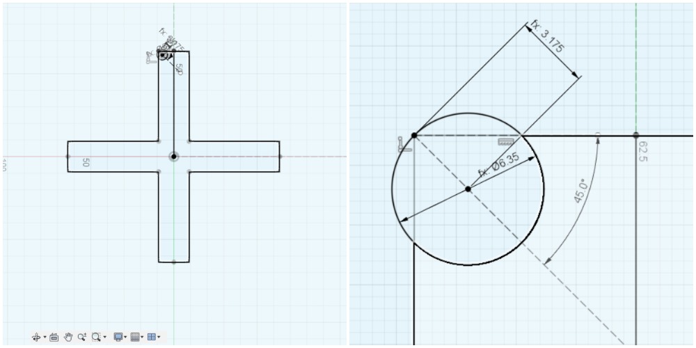 I’m going to “cut” these two rounded corners, and then using “Circular Pattern” I will cut the rest of the corners to form the dog’s bones.
