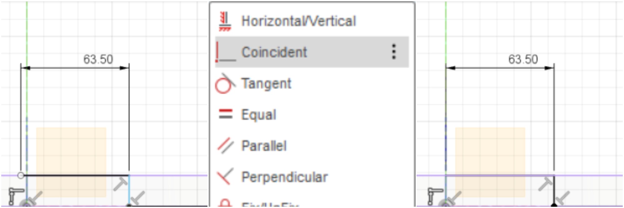 To solve the problem of sketch crawling without any complications, I used the “Coincident” feature by specifying the lower-left corner with the middle line.
