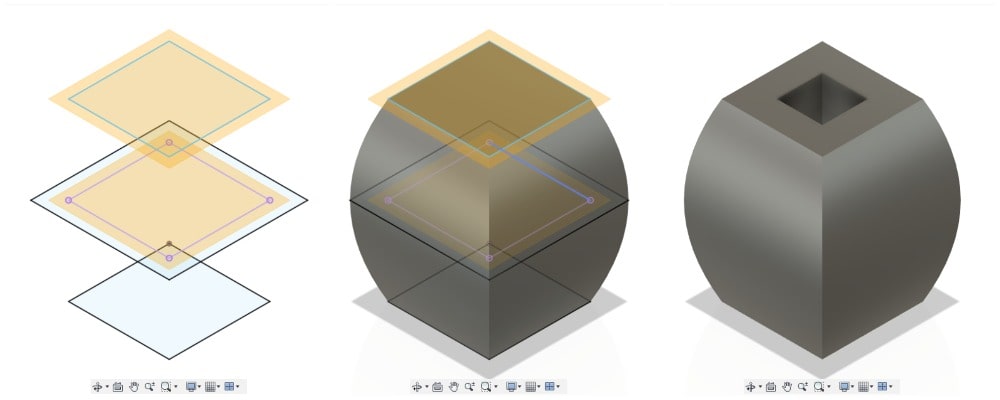 I did this simple design with simple steps, which I sketch it with the “Offset Plane” feature, then I used “Loft” and “Shell”.
