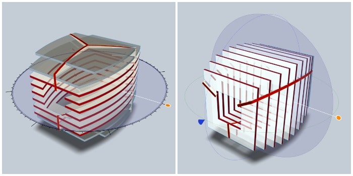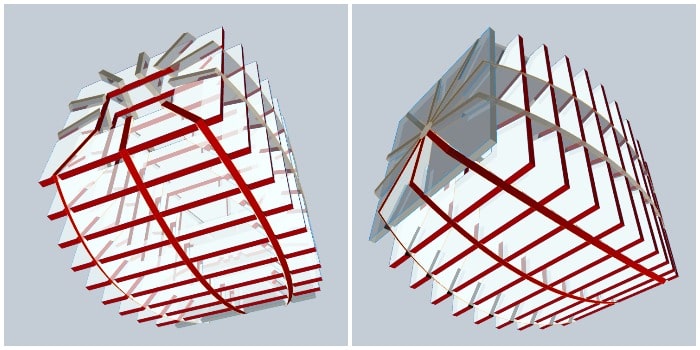 This is how the slised lamp was modified, and the number of slice was determined, from the upper and lower direction. Thus, it can be cut with CNC.