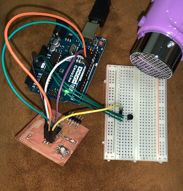 After this was successful, I connected the sensor to the headers on the board.