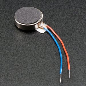 A vibration motor has two terminals, usually a red wire and a blue wire but the polarity does not matter for motors. These two wires are used to control the vibe, and simply vibration motor can be powered from a battery or microcontroller pin with a tension between 2 to 5 Volts. The greater the tension, the greater the vibrations produced and the current consumed.