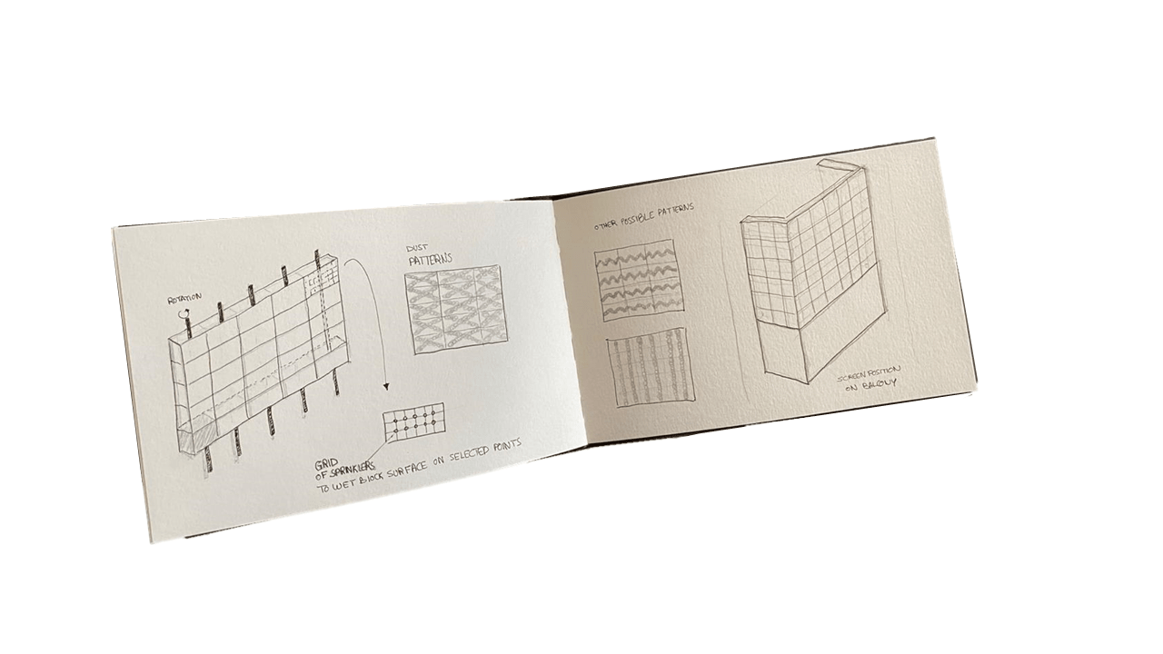 It will use a sprinkler system to wet block surface on predetermined points to create a pattern which eliminate the unpleasant view and traces of a sandstorm.