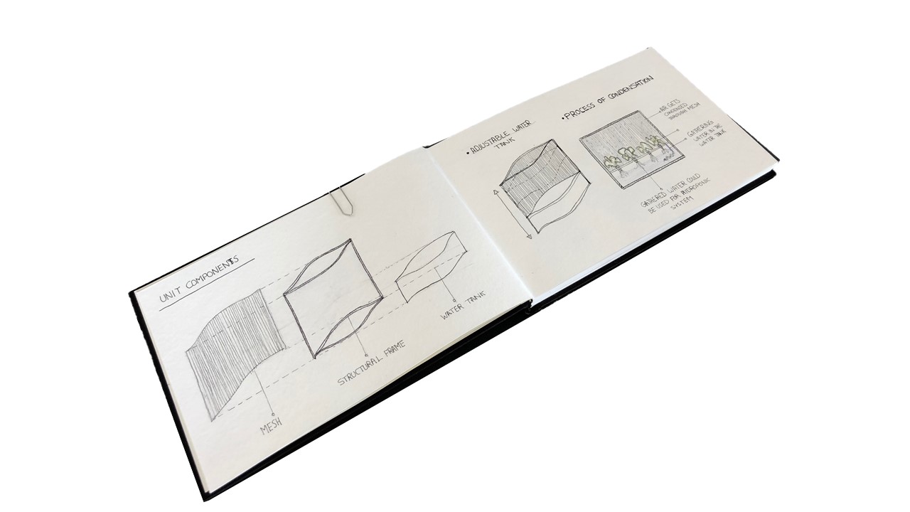 I am proposing a self-contained unit that acts as a radiant barrier and a fresh breeze wall through the utilization of humidity in the thin air in hot humid cities. This unit is a part of a modular design which uses the collected water to shade by growing plants, grow food, and water birds.
