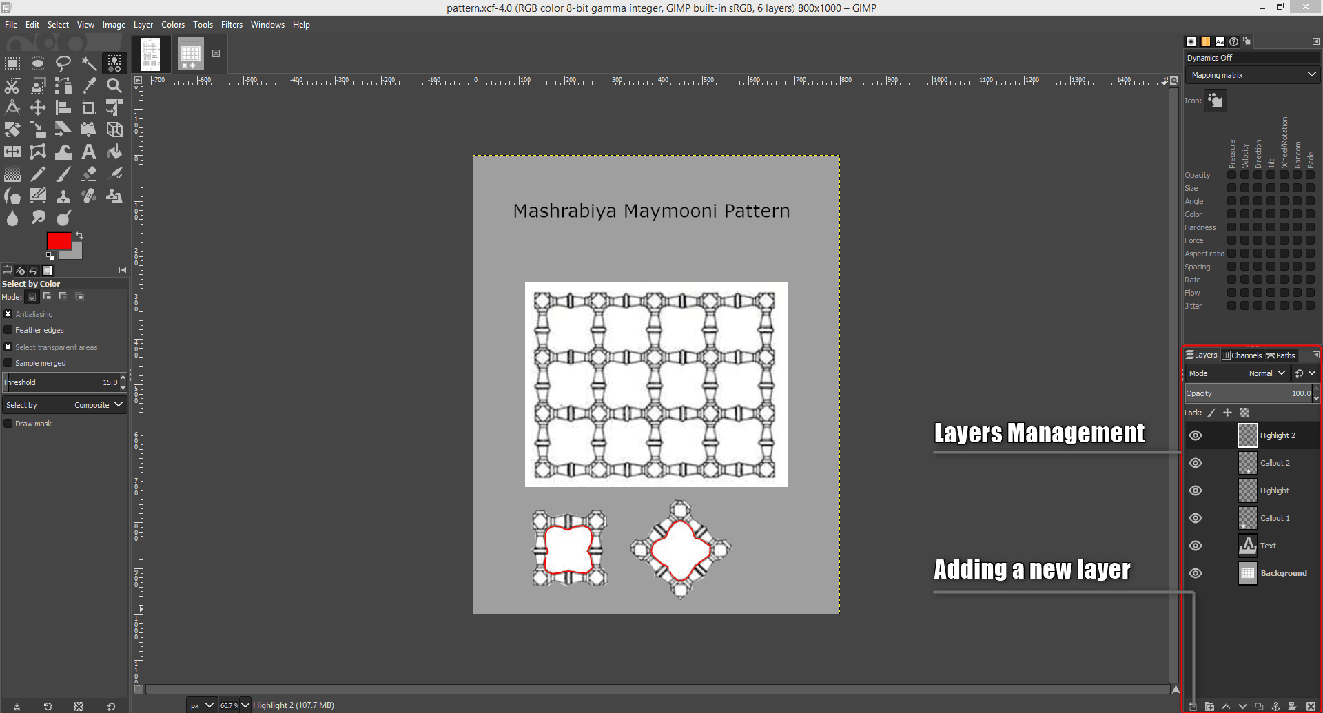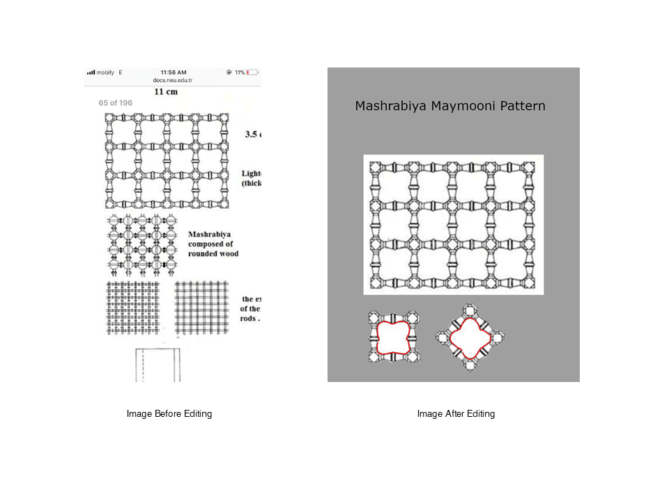 I inserted a photo in GIMP taken from a research about Mashrabiyas (link in references), I edited it by selecting and copying the part I needed and then pasted it in a new file. I then tried exploring some of the tools of the software just to get myself familiar with the interface.