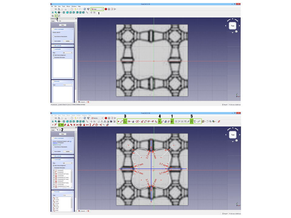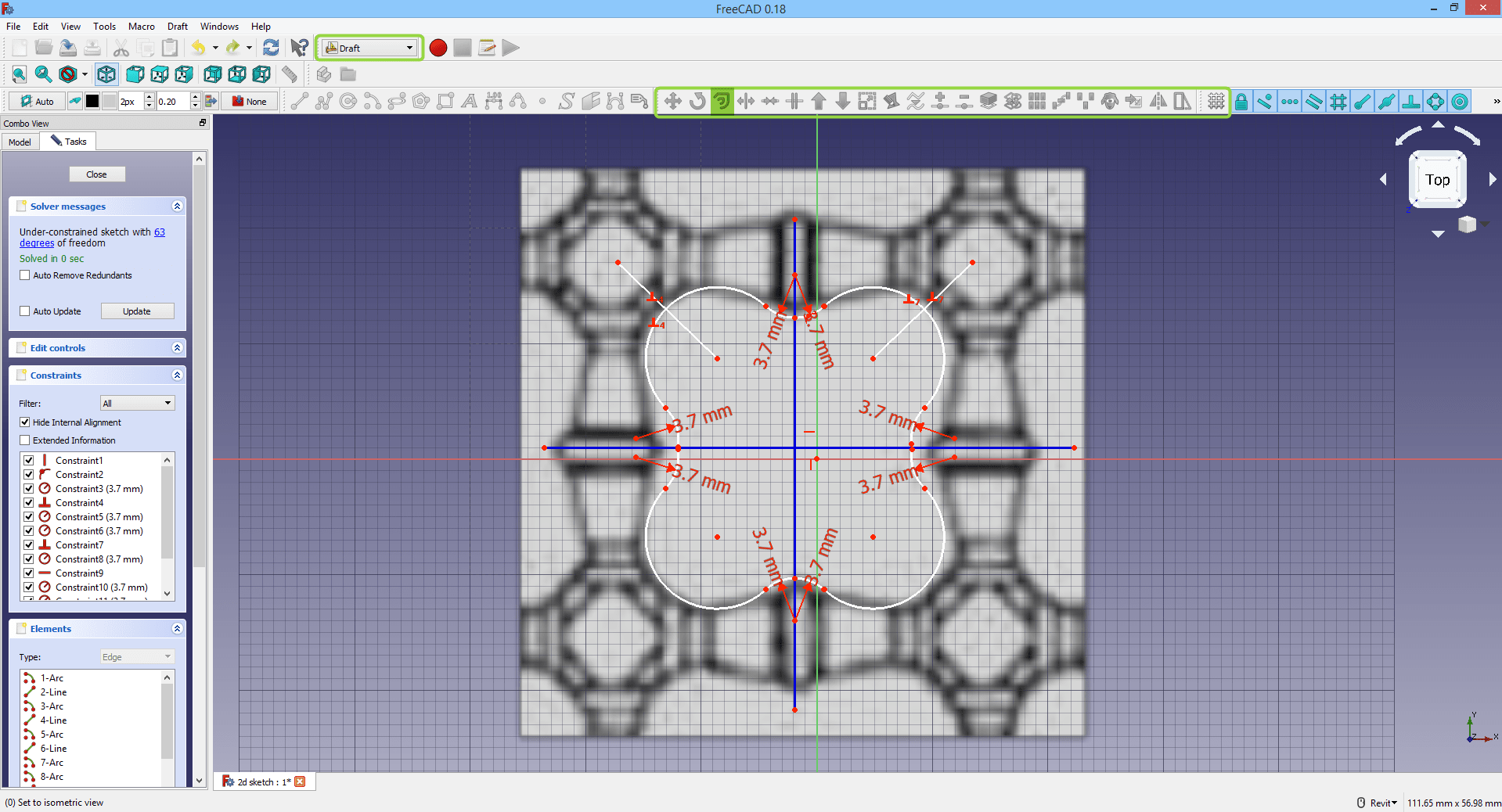 II. Using the “Sketcher” workbench, I created a new sketch and started drawing over the image.
