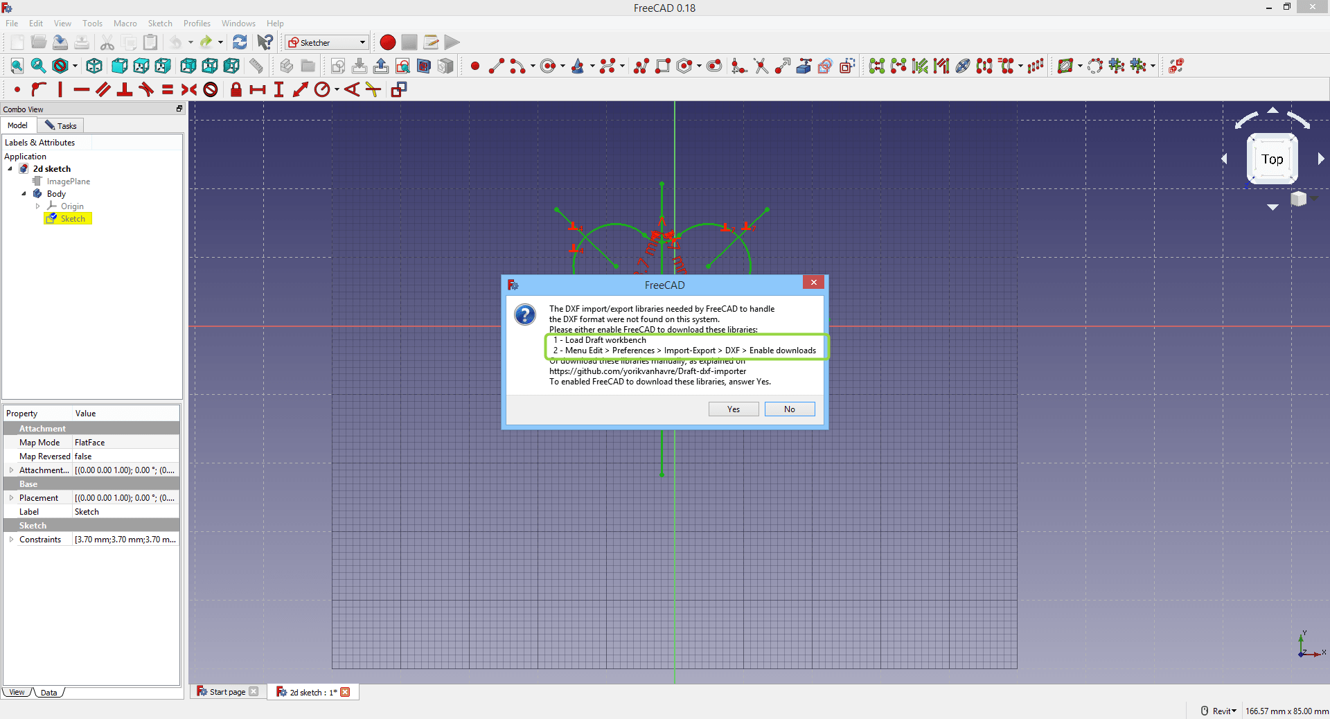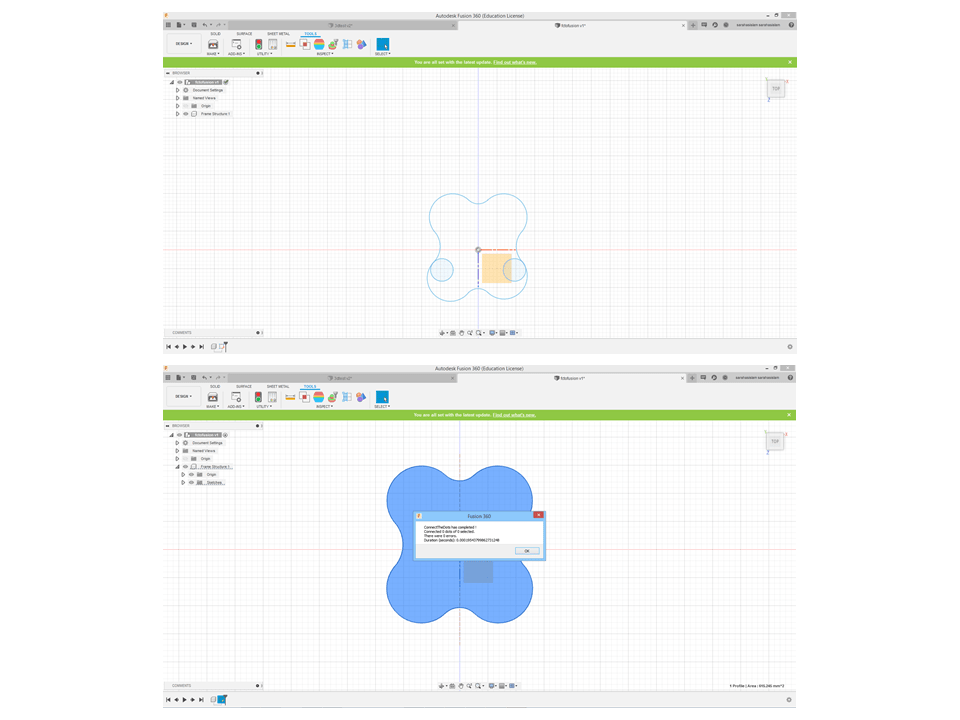 When I inserted my .dxf file, the lines came in several parts and were not connected. So I was trying to find a way to make them all connect to become one closed shape so I can model it. I used an Add-in called “ConnectTheDots”. I needed to install it by downloading the script and copying it in the right folder.
