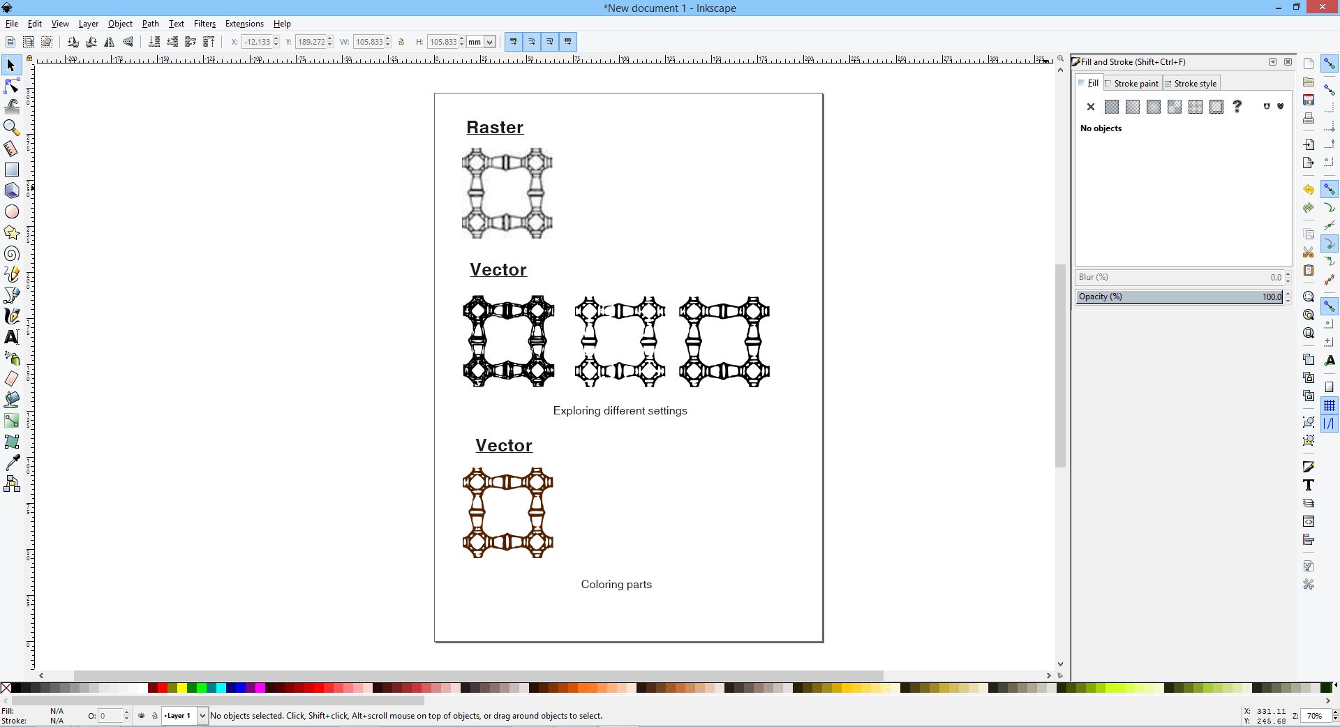 I also tried to trace a raster image to turn it into vector by going to the tool bar and selecting > Path > Trace Bitmap.