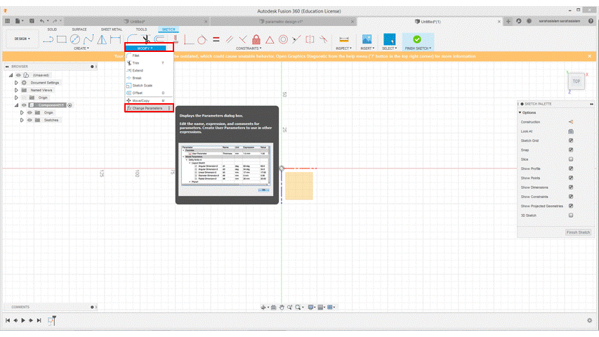1- I started from a circle, I then gave that circle a diameter measurement using parameters as shown below in the pictures.