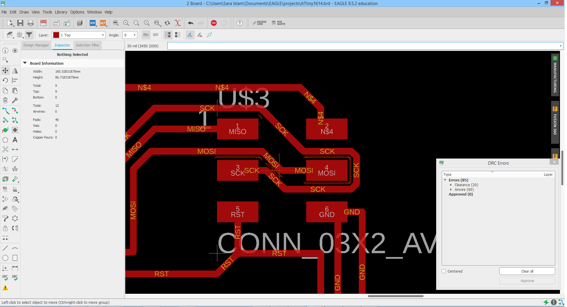 This week I worked on designing an electronic board using Eagle software; a design tool for designing printed circuit boards. I found working in this software was very simple due to its graphical interface which made it easier for a total beginner like myself. You can install Eagle for free from here