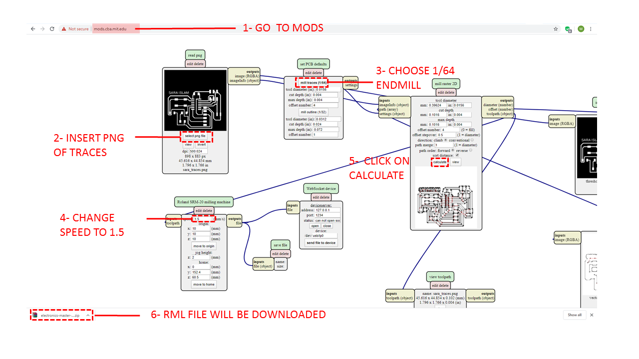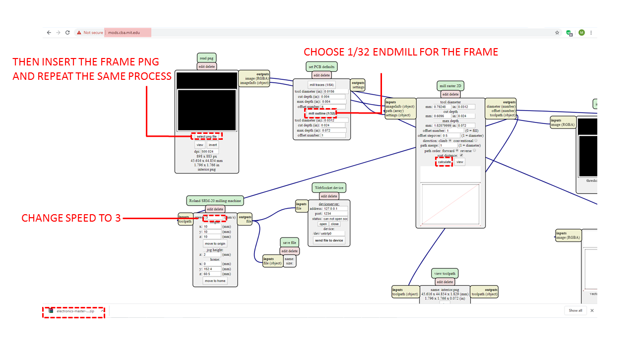 After exporting my files to .png, I then used Mods to convert the files to .rml so the milling machine can take it. I did that for both images with a slight change in the settings. For more details about Mods and the Milling process, go to my Electronics Production Assignment