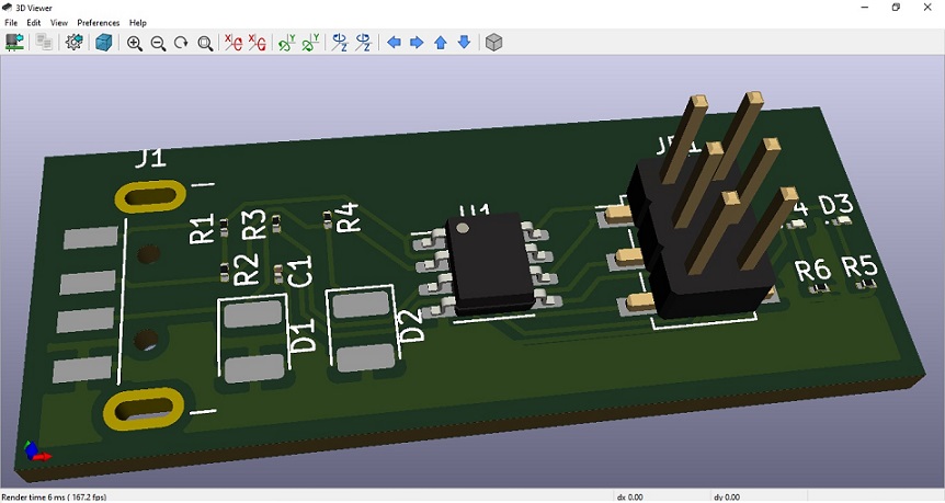 The PCB layout, Trace and Cut files are given below: