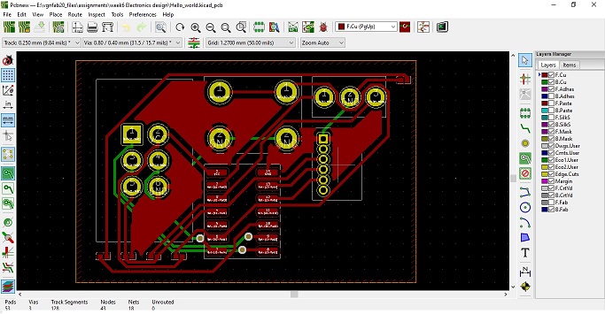 The focus of this week is to design our own PCB board and running AVR program with the board. To do that, we have covered circuit design, components and symbols, PCB CAD software and AVR programming.