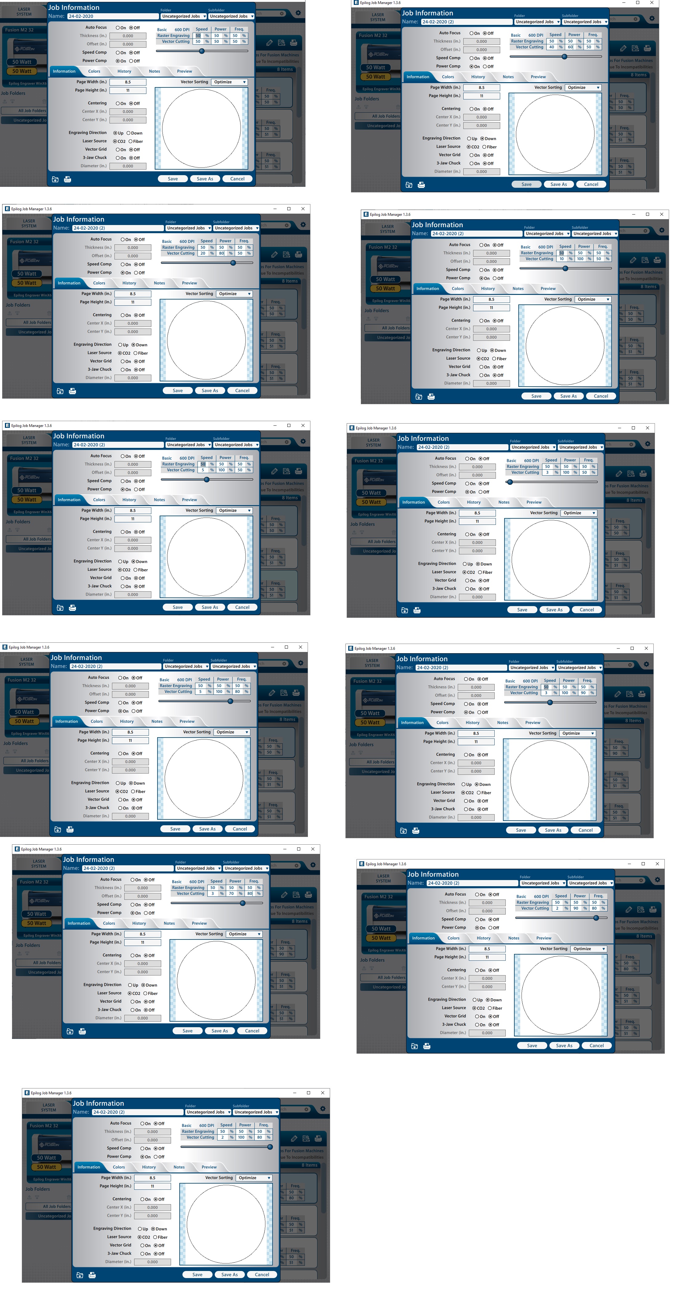 Setup and Test Make test part(s) that vray cutting and dimensions, to characterize our laser cutter. Hardware Set-up