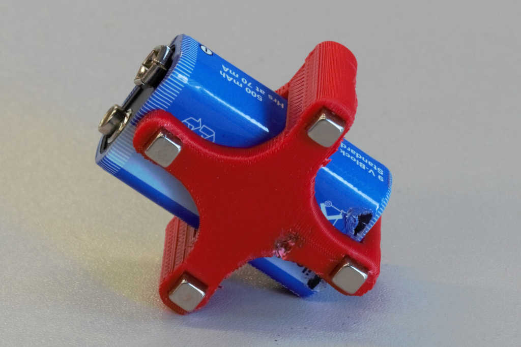 To mount a 9V battery I designed an adapter which holds with 4 magnets simply on the form.