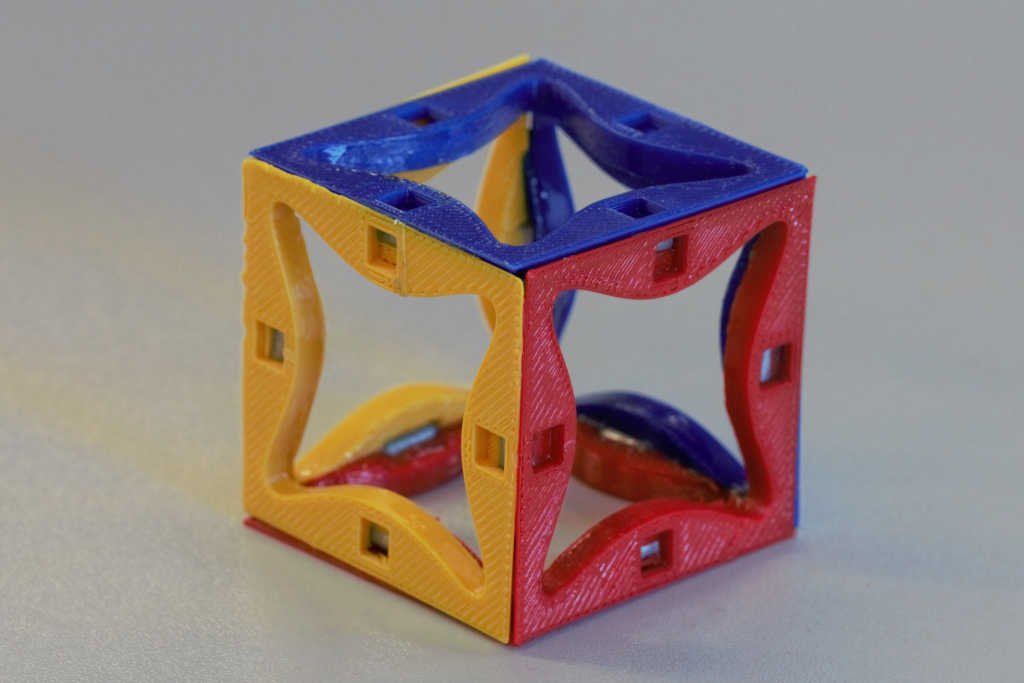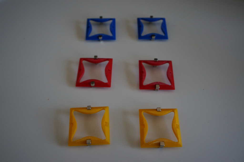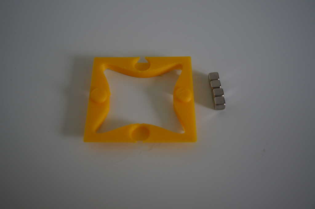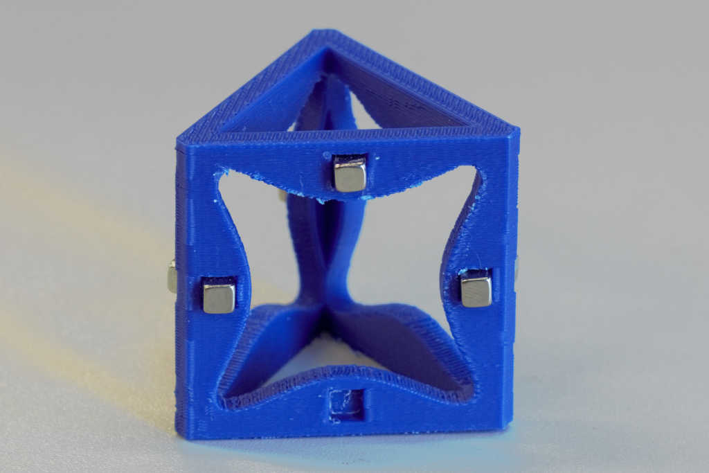 In the end I decided to use this system for the main blocks You have six 3D printed parts which are glued with acetone. Into the parts you glue 12 small fero magnetic parts before. Where the magnets will hold on to later.