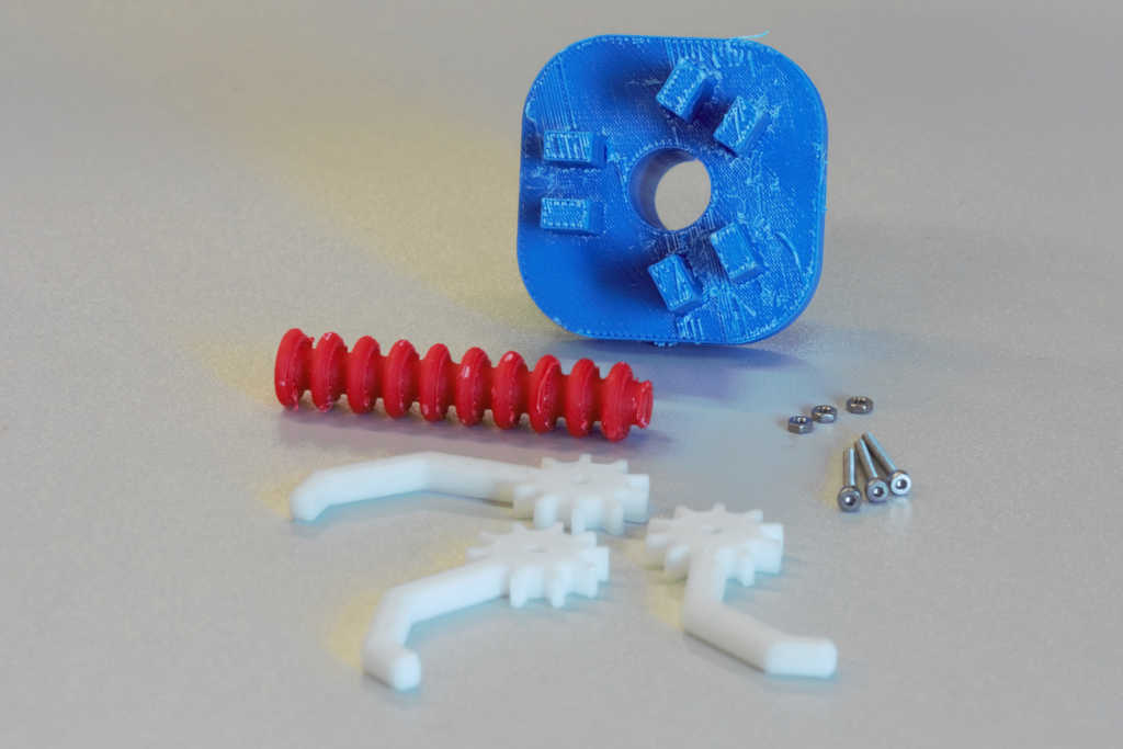 To be able to grip something with a robot I have designed a 3 finger gripper which can be controlled by a servo. All parts can be connected to a normal main block with magnets.