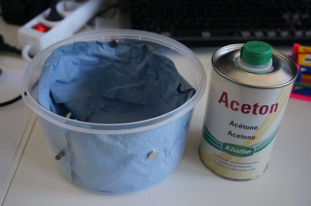 Fourth step: acetone steam bath. Since the material is ABS, the parts now stick together. It's important that the bonding aid is not made of ABS.