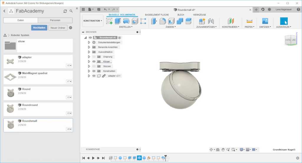 Then I created two sketches, the first to define a path, the second to define the shape of the path. The distance between the ball and the holder is 2 mm.