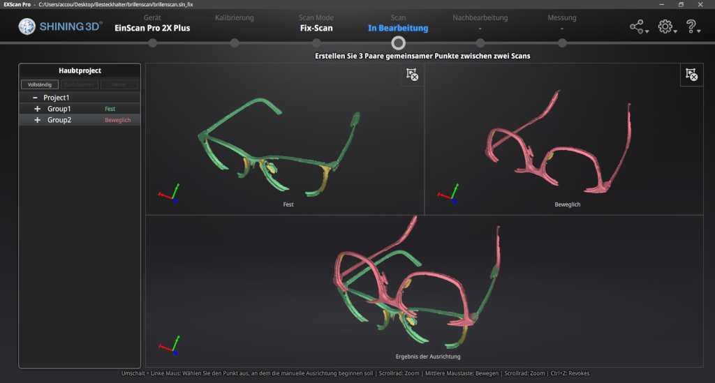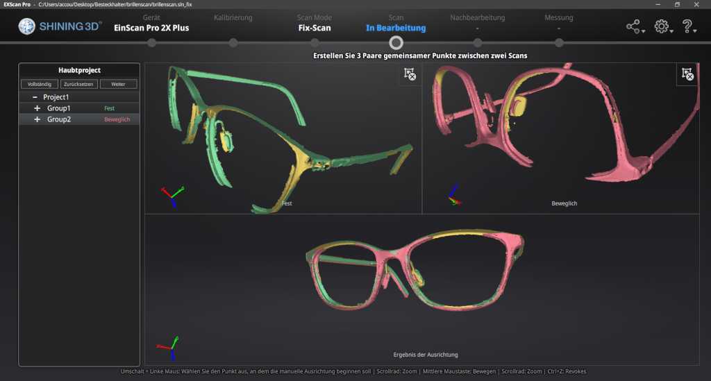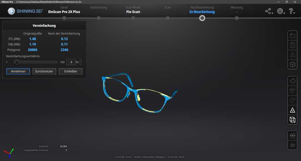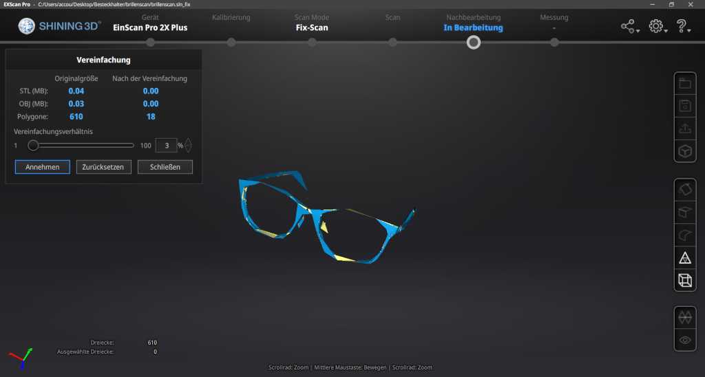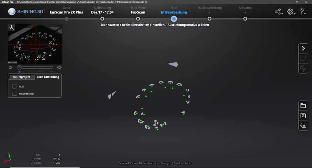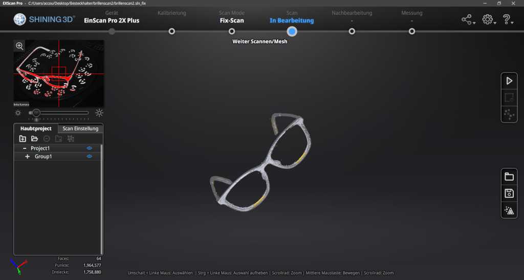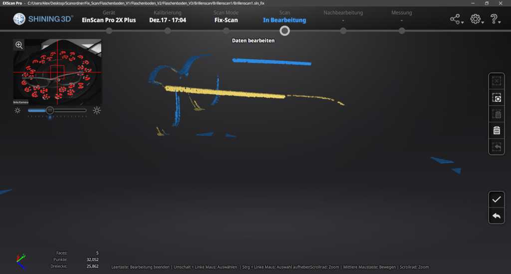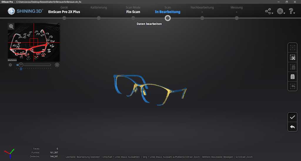 With the software of einscann one can make all adjustments for scanning and edit the scan.