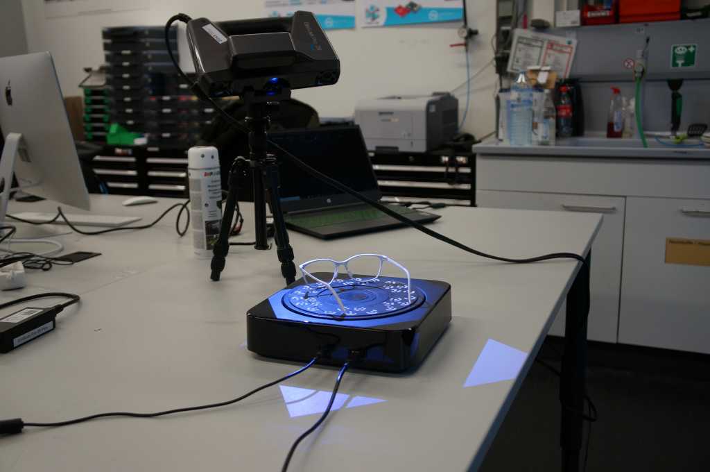 So I turned the glasses upside down so I could scan them from all sides.