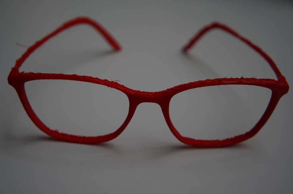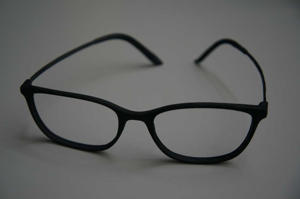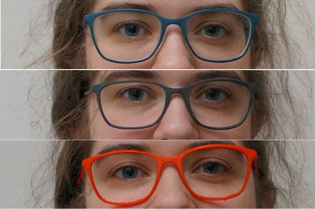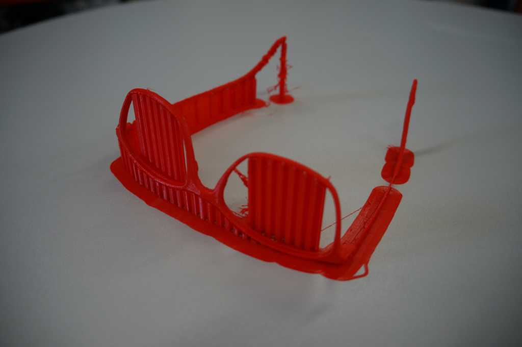 The second test scan was not perfect either. The scanner did not scan the lower sections of the glasses properly, as these are similar to the white orientation markers. I fixed this by tricking the scanner. Since I discovered that it does not scan black I put two dark USB sticks under the glasses. Then I made two more scans, this time the program scanned better and I merged them together independently. Then I printed the scan.