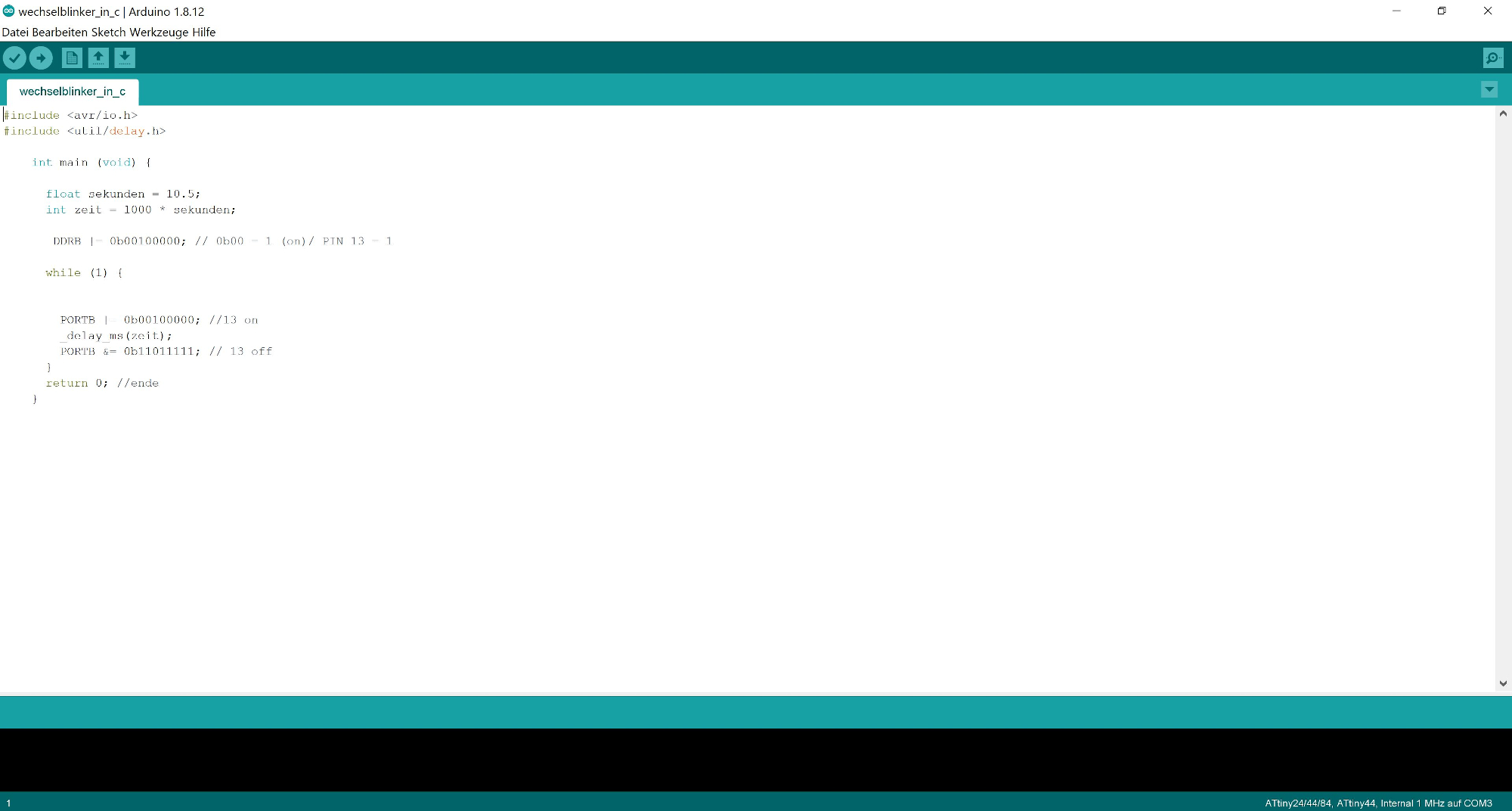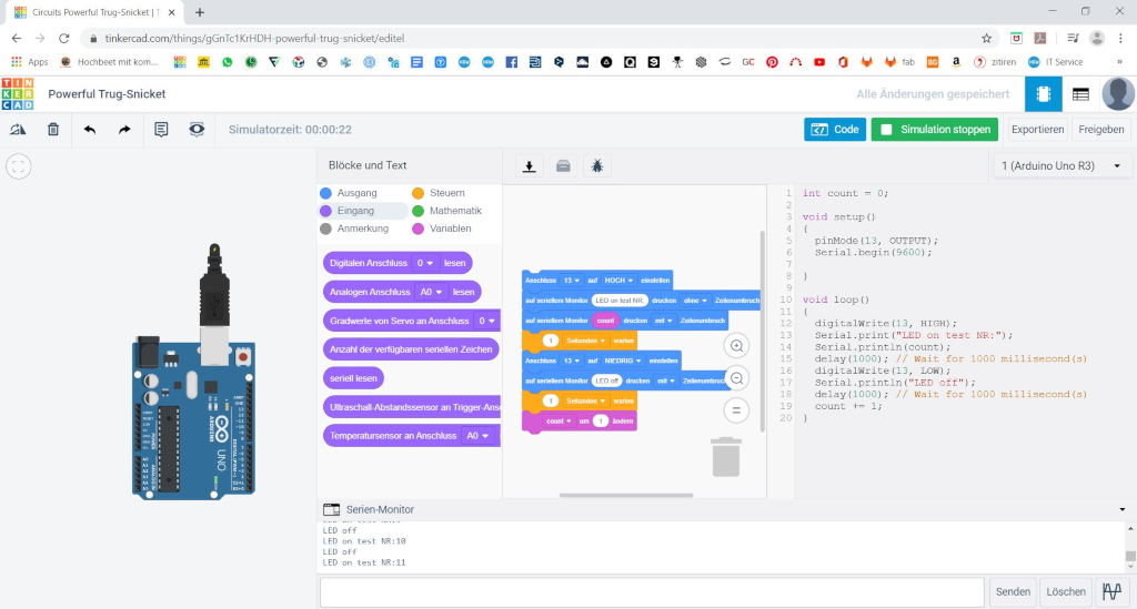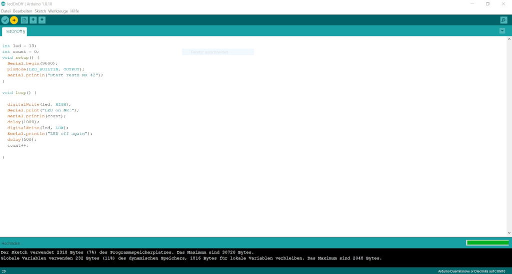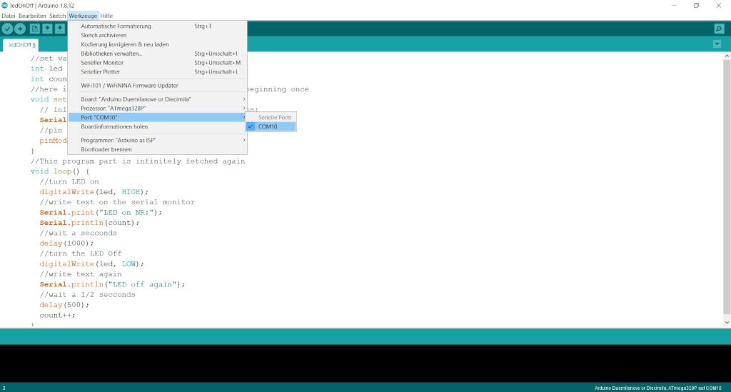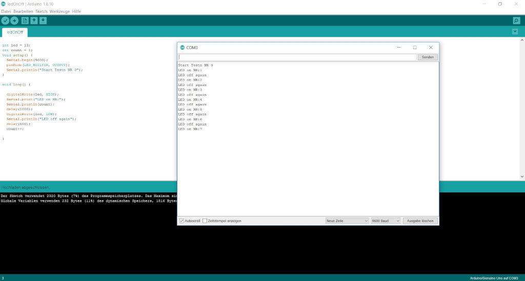 Parallel to this it shows on the serial screen of the computer how many times the LED has been switched on. As long as the microcontroller is connected via a serial interface.