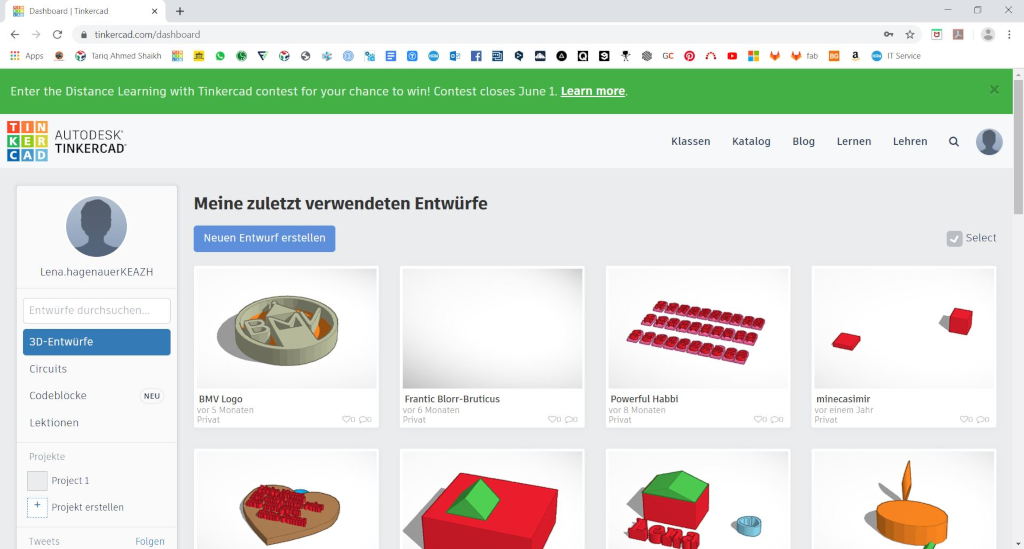 Tinkercad was developed to get an easy start in drawing 3D files. Here we see a pair of drawings from the kids from my robotics club.